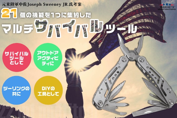 SWEENEY'S WARFIGHTERSの創設者Joseph Sweeney JR.氏は米陸軍に長く従事していたキャリアを持ちます。「軍の携帯する物の全てに高い機能性が求められます。」このような自身の経験より様々なシチュエーションで活用できるSWEENEY'S WARFIGHTERSマルチサバイバルツールが誕生しました。