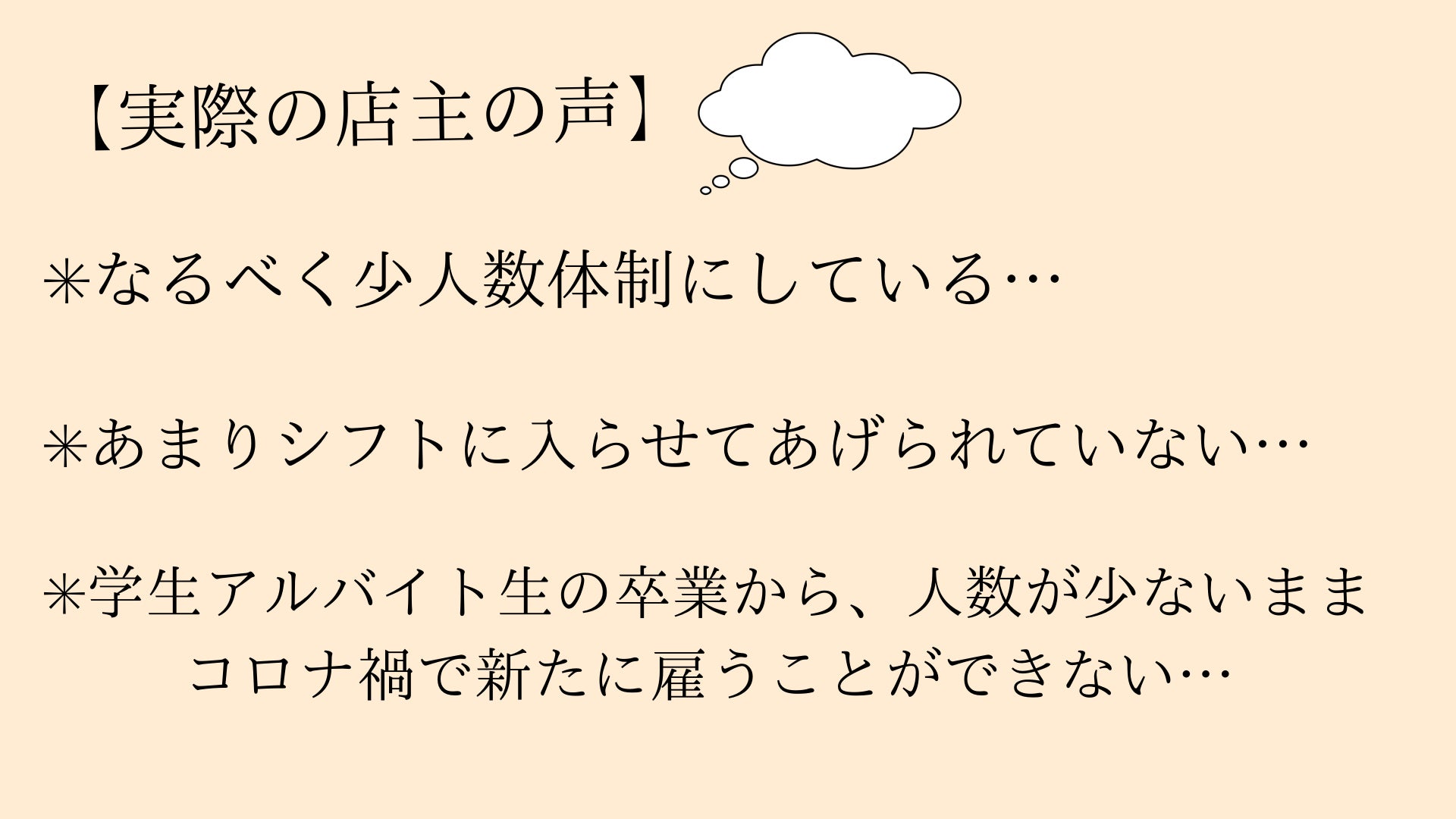 現在コロナ禍で、飲食店全体は売り上げの低下など厳しい状況に立たされています。