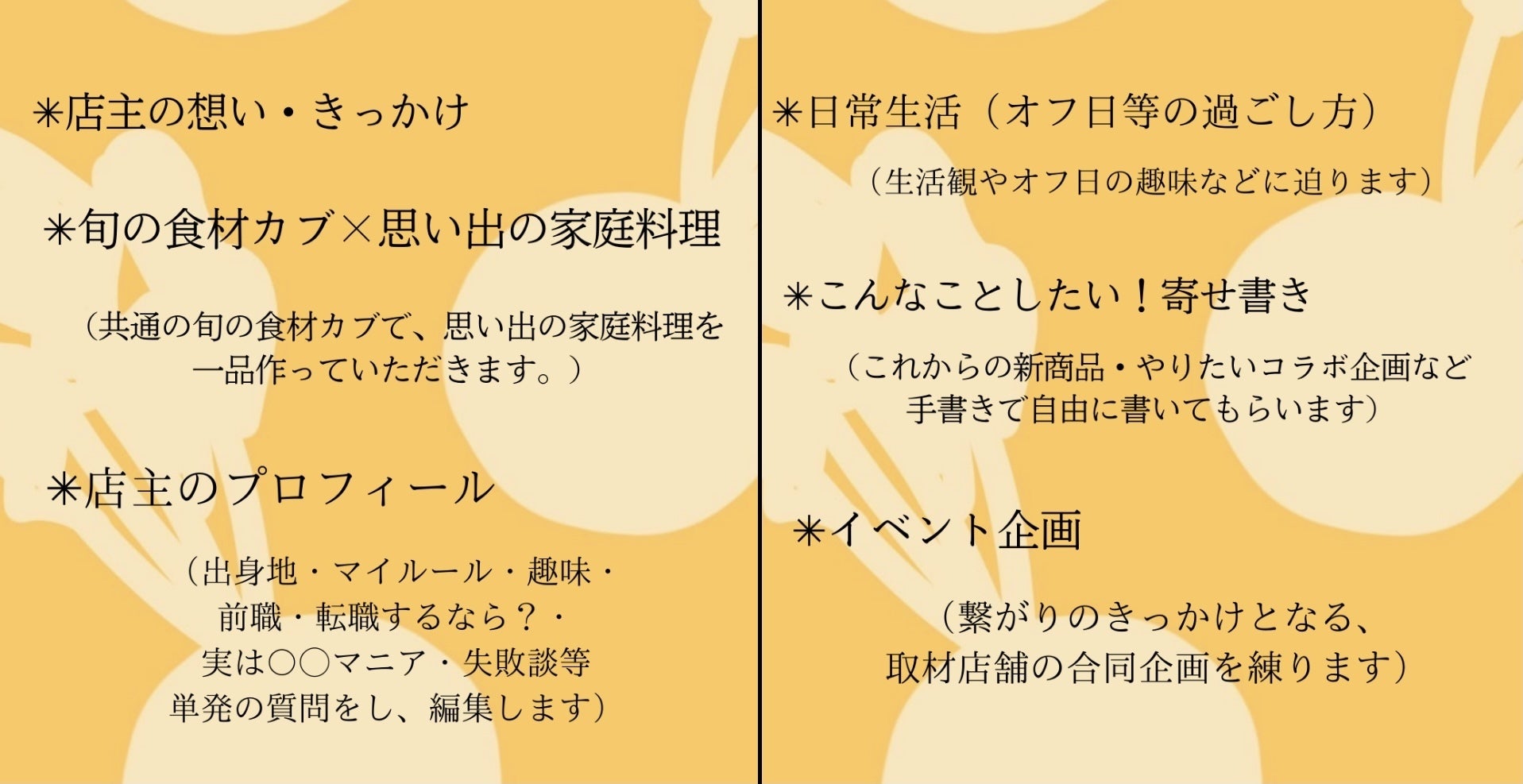 「個人飲食店の繋がり」をつくるというコンセプトに共感し参加しました。