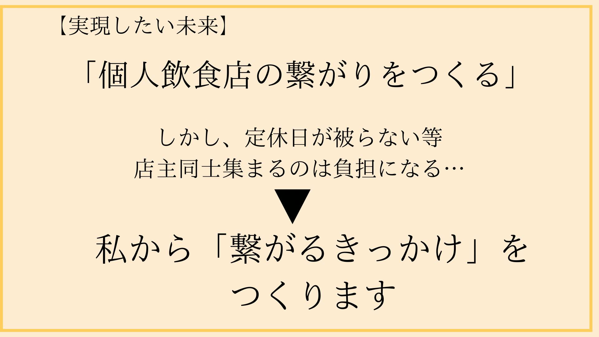プロジェクトの「個人飲食店の繋がり」をつくるという目標に向かって活動していきます。