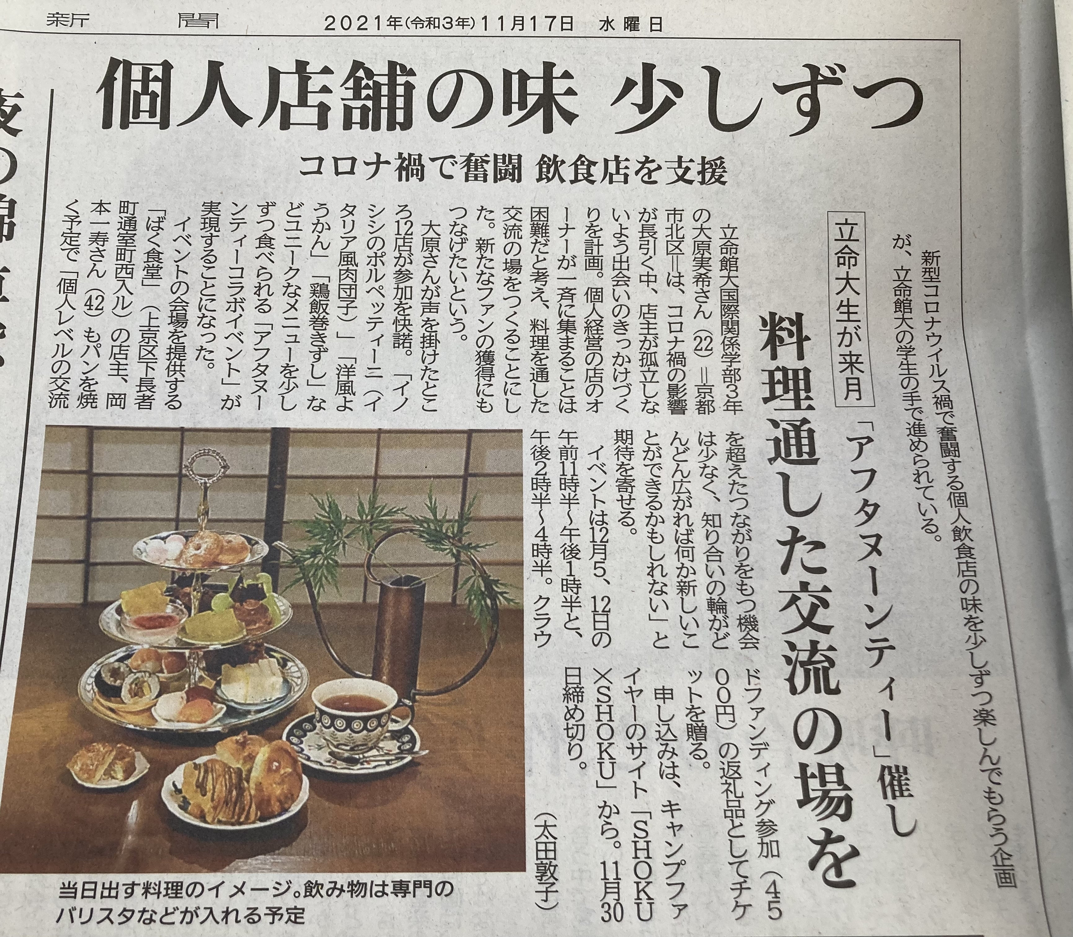 11月17日に、京都新聞の朝刊にて掲載されました!