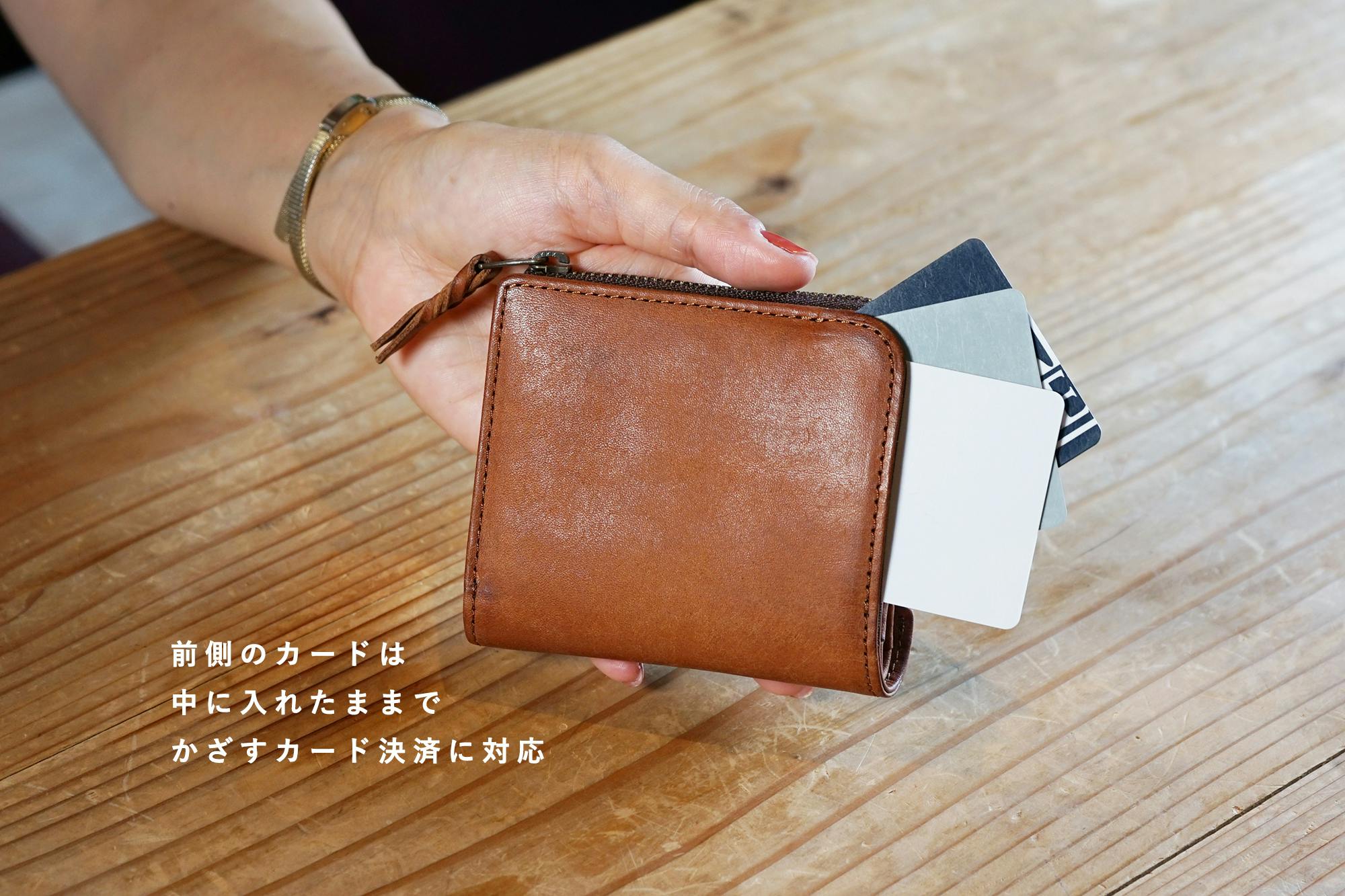 一番外側(前側)のカードは、出さなくてもかざすだけのカード決済に対応。ピッと瞬時にお支払い完了です。