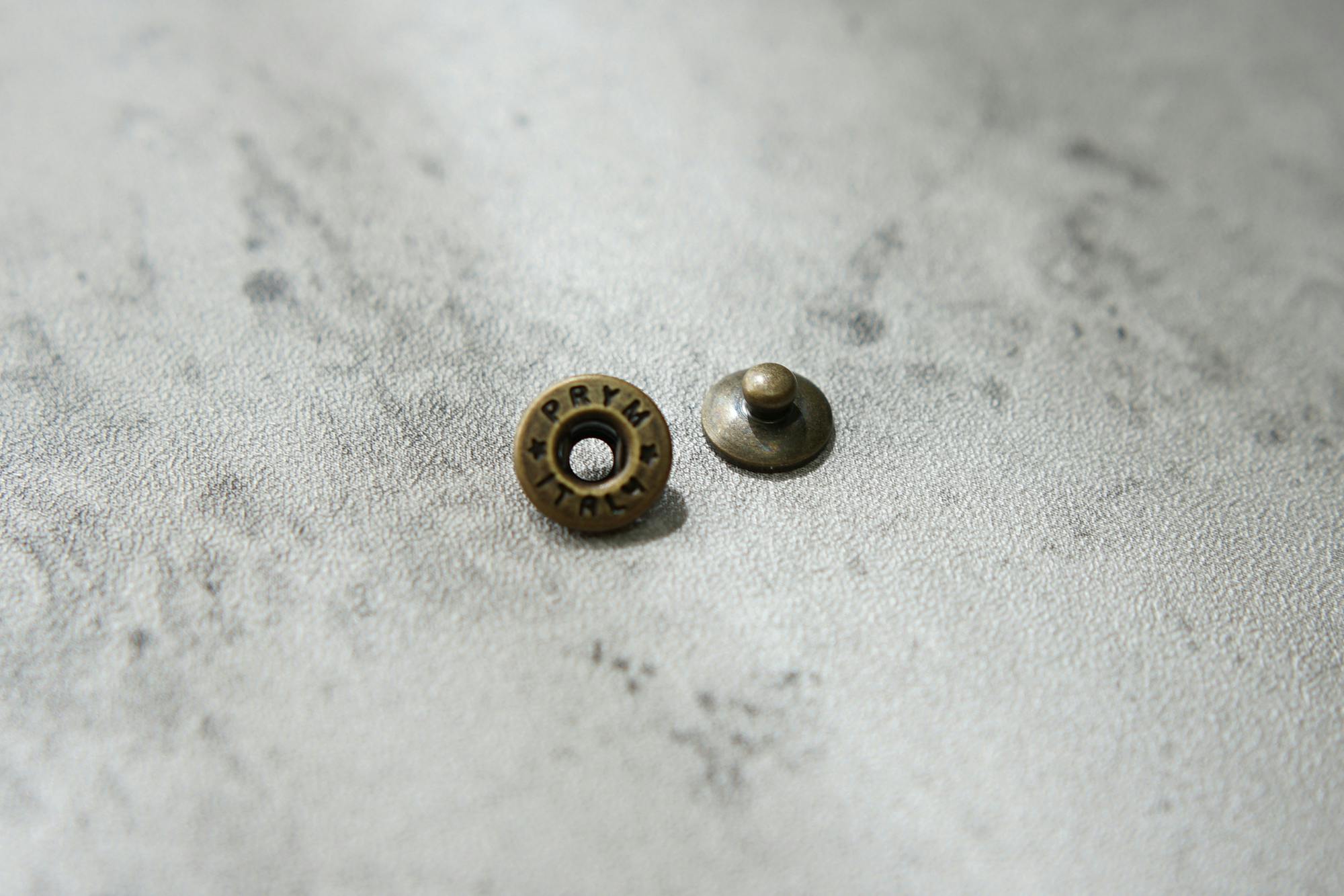 ワンアクションで取り出せるホックタイプ。ヨーロッパのスーパーメゾンでも採用されているイタリアPRYM社のバネホックを使用しています。バネパーツには「PRYM ITARY」の刻印が入り、ゲンコ(凸型)パーツが高級感のある真鍮を削り出した挽物になっています。よく使用されているホックと違って上品で、開閉時に手に伝わる感触や音も良い感じです。