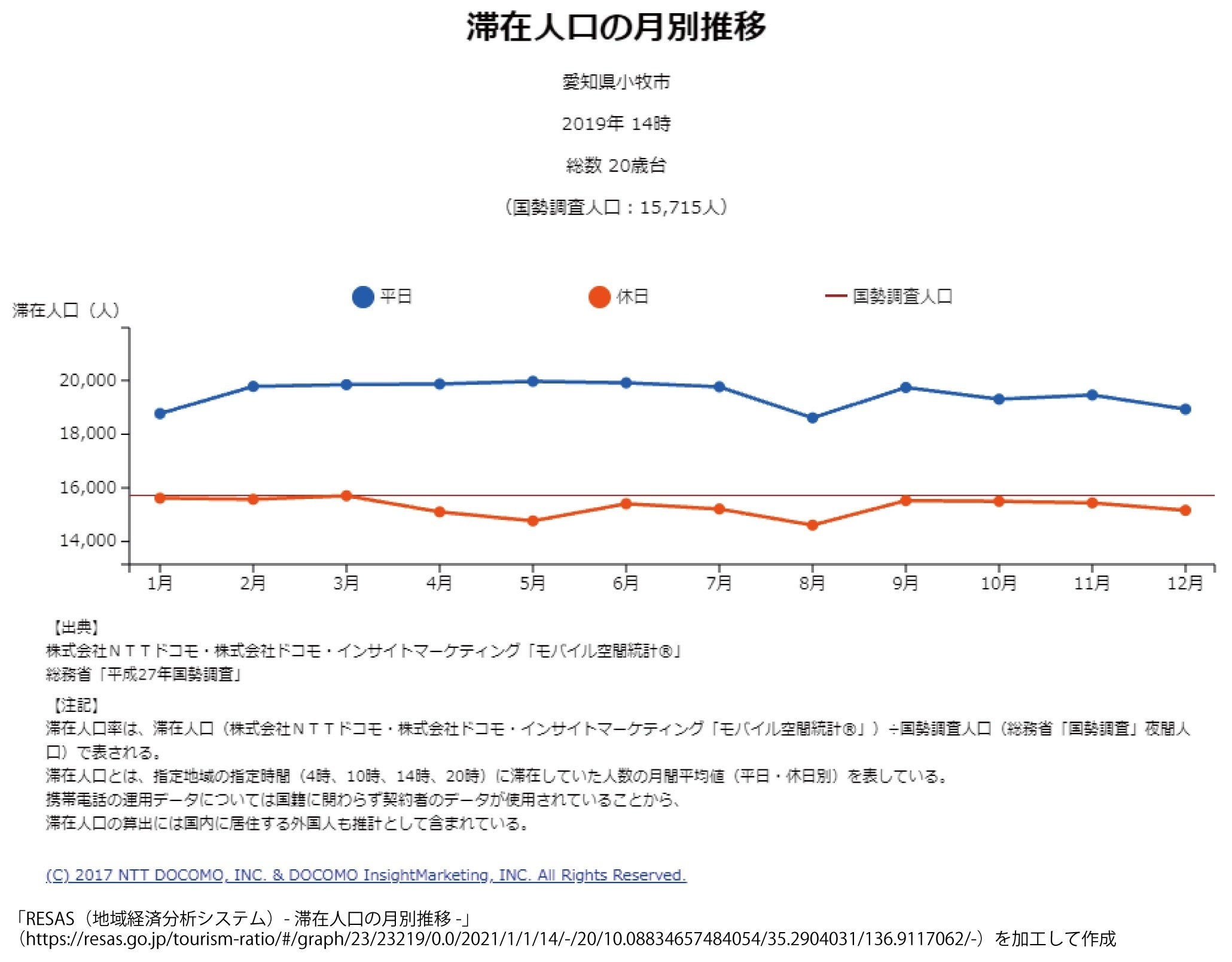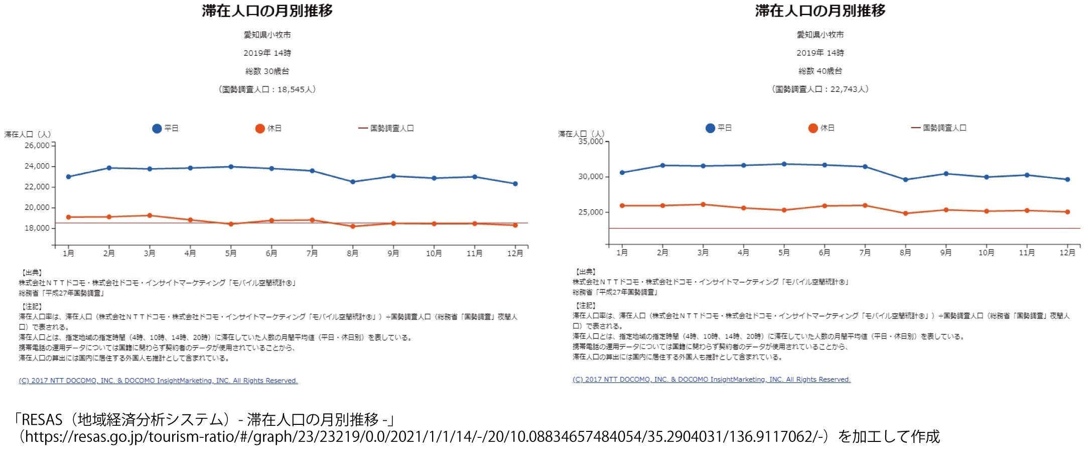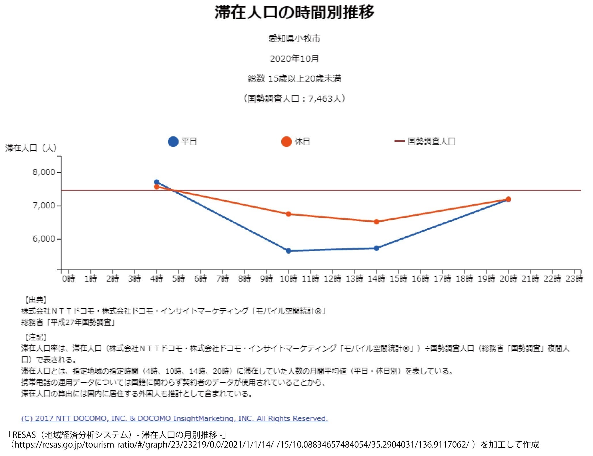 小牧市における滞在人口時間別変化図をご覧ください。