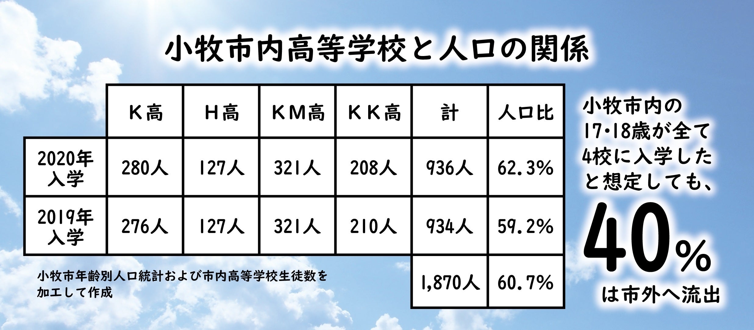 高等学校の受入を見る限りでも、20歳未満で市外に出てしまう方々が少なくない状況にある事が分かります。