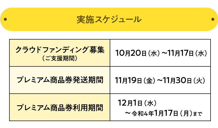 支援者のみなさまには、後日、ご自身が指定した商店街で利用できる「商店街を応援しよまい! プレミアム商品券」をご登録された住所に発送いたします。
