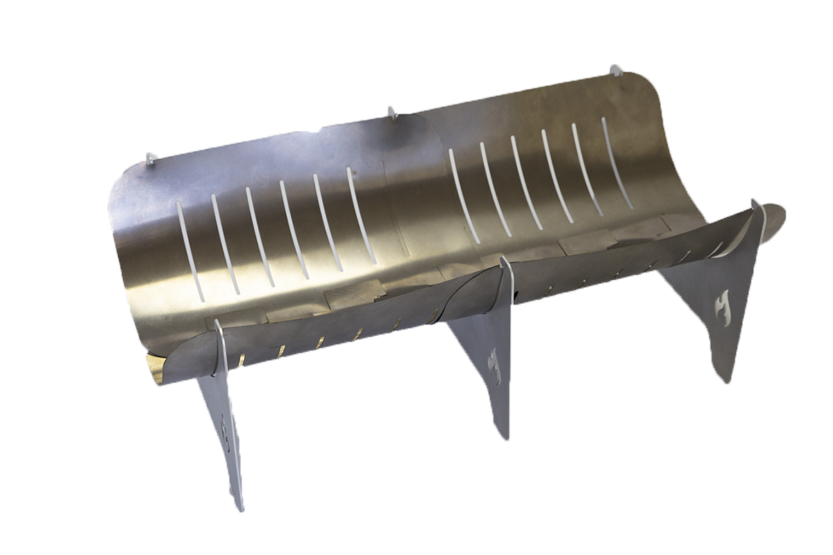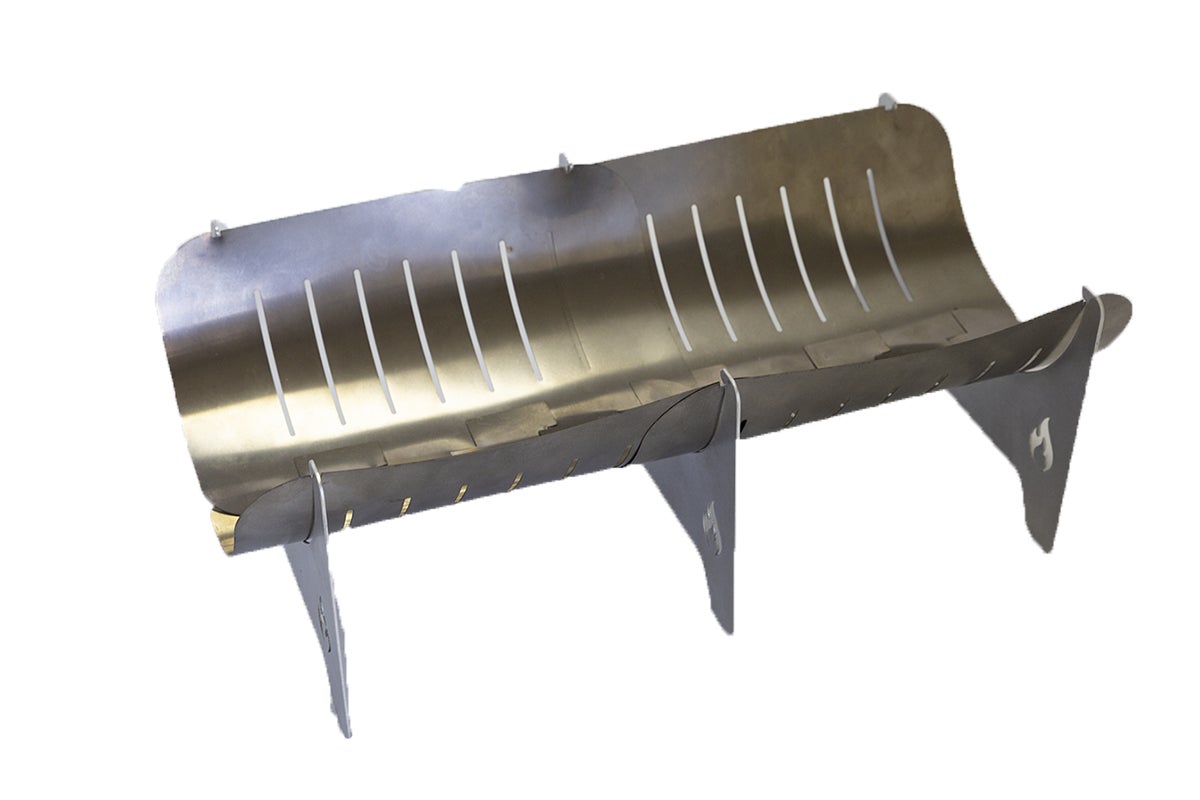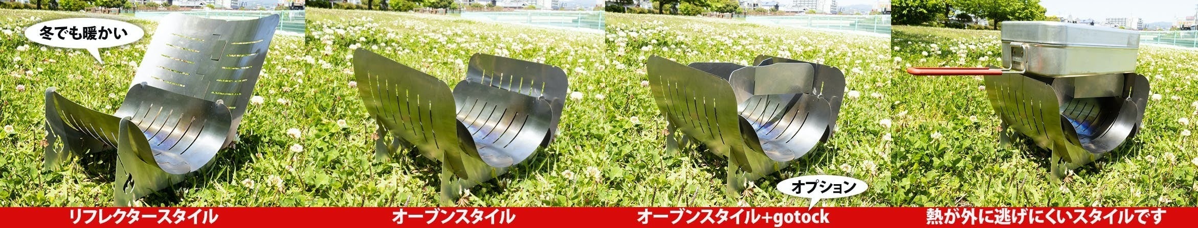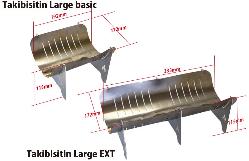 EXTは2連結ノーマルスタイルはもちろん、底板を脚部のスリットに差し込んで、リフレクタースタイルやオーブンスタイルにもトランスフォーム可能です。オプションのgotock(ラージ専用ゴトク)をセットすると調理の幅も広がります。(今回はLarge basicを出品しておりません)