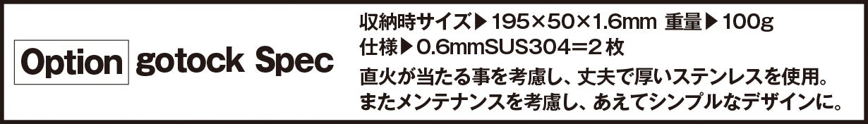gotockは、強くこすっても錆びにくいステンレスSUS304を使用しています。また掃除がしにくくなるという理由と強度維持のため、ロゴや穴を開けていない質実剛健なゴトクです。