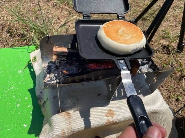 蒸しあがったらまたまた、ホットサンドメーカーの出番です。