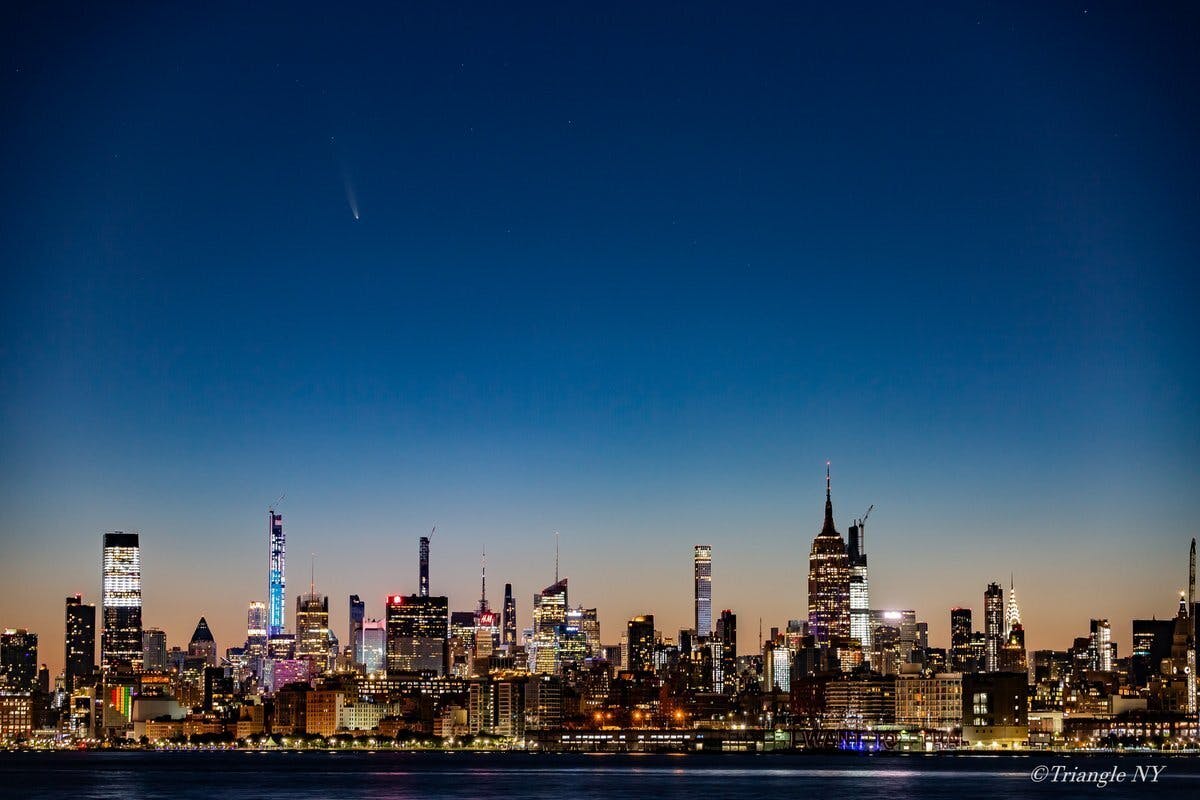 この時は彗星の光が強いこと、夜明けでマンハッタンの街明かりが少なかったことで綺麗な1枚に仕上がりました。
