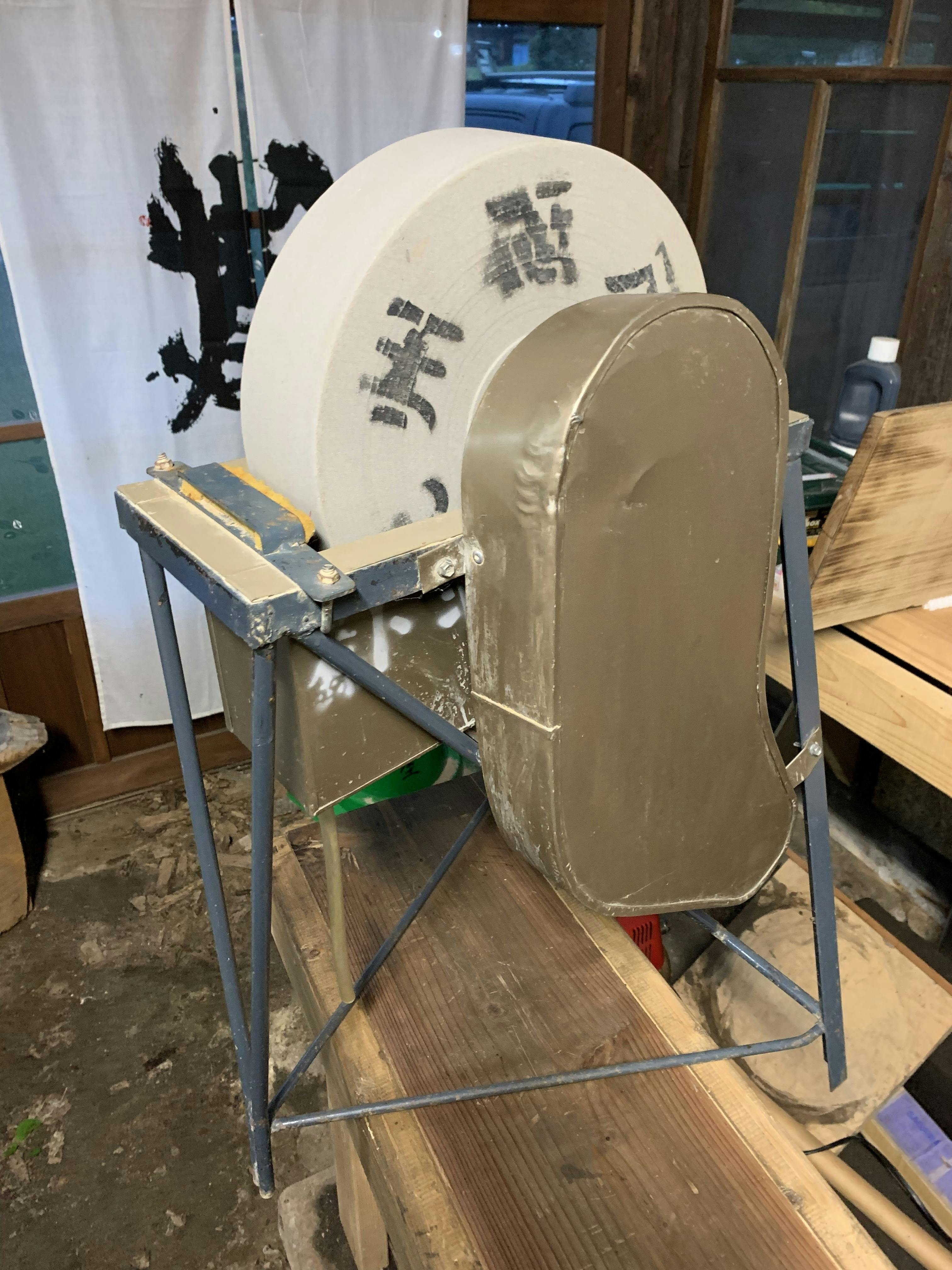 今までは刃物をグラインダーやペーパー研磨機などでしていましたが、加熱が意外と問題なので水研ぎができるのは大きな戦力になります。