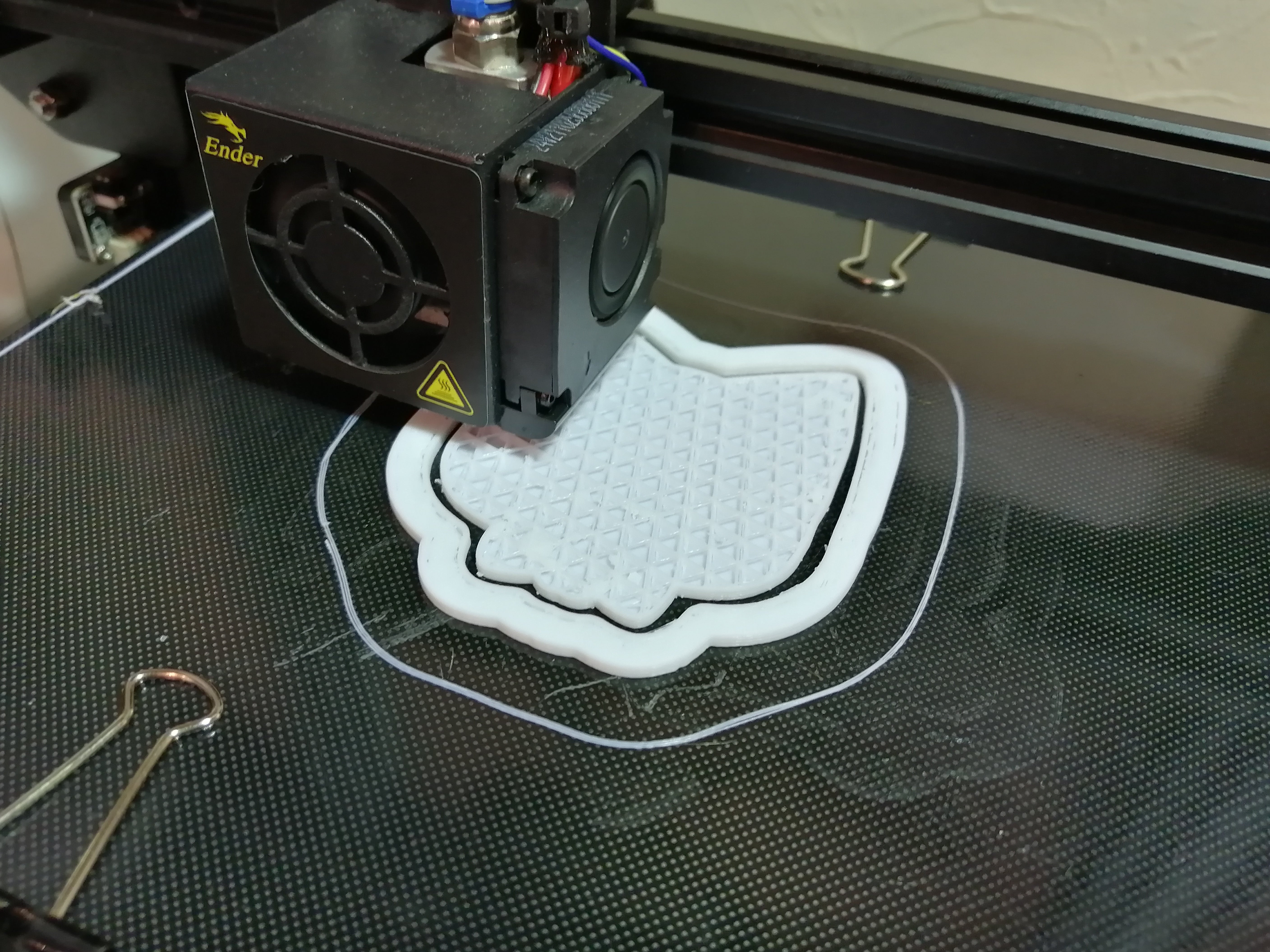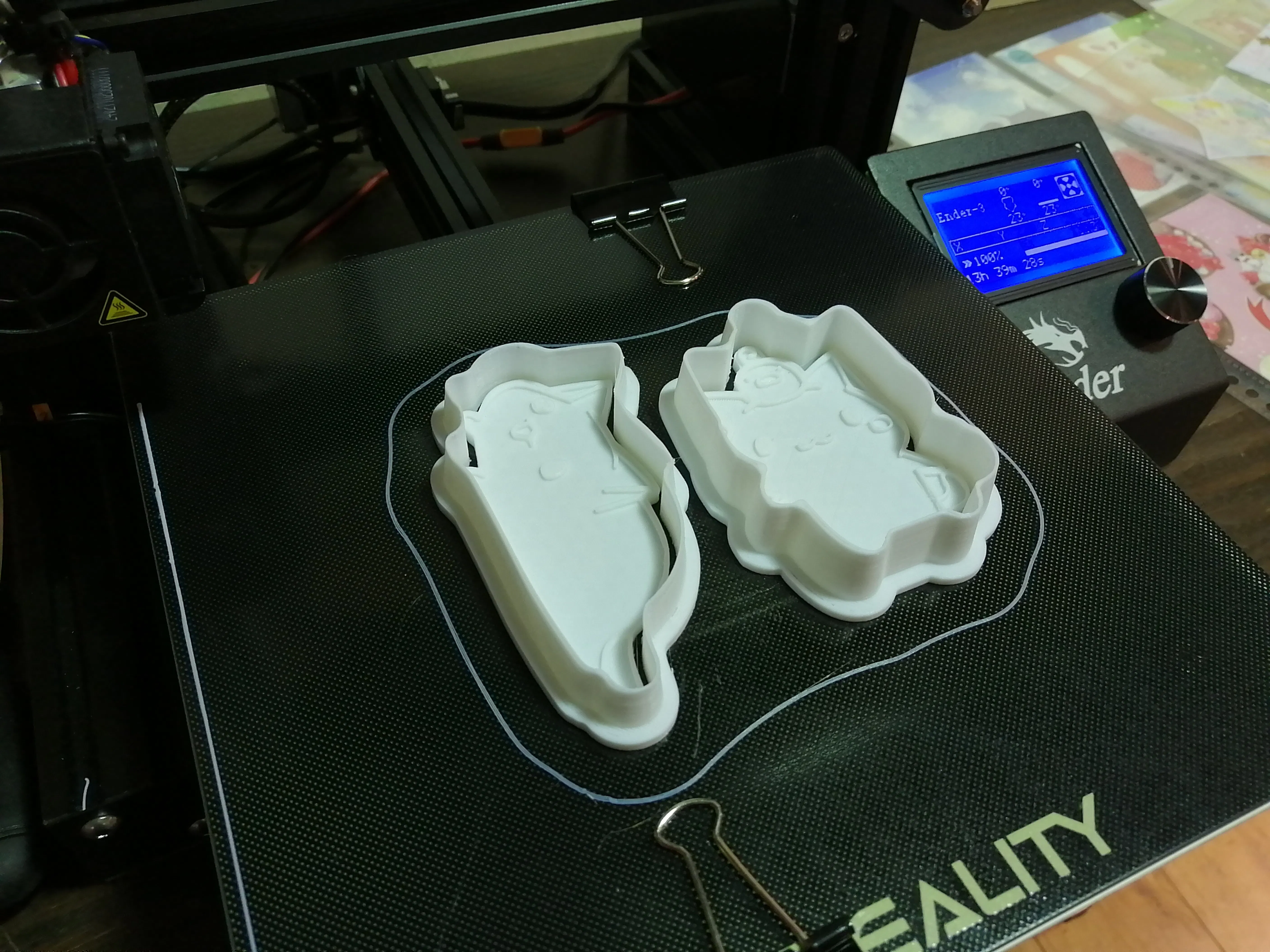 2Dデザインから3D化したデザイン本当は早急にクッキー型を作り、返礼品クッキー制作に取り掛かりたいのですが、悩ましいのが、一つのクッキー型をプリントするのにおよそ8時間前後かかる点と、印刷精度が荒く、場合によってやり直しが発生するです。
