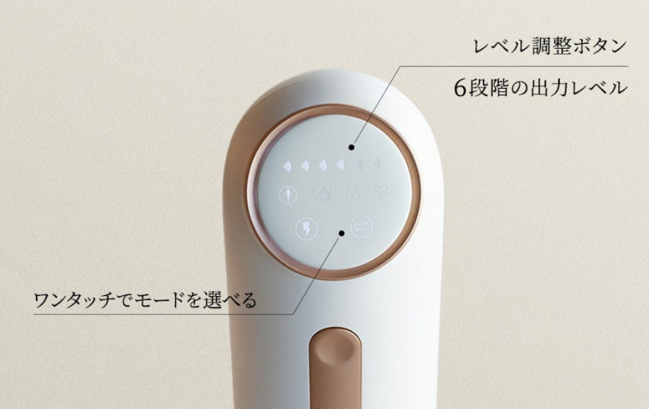 また、日本限定モデルの新機能である「エステモード」への切り替えにより、顔だけではなく全身用“美顔器”として早変わり!ケアするパーツとパワーを選ぶだけの簡単操作なので、初めてでも男女問わずすぐに使いこなしていただけます。サロンでは躊躇しがちな部位もケアできて全身理想のツルスベ肌へ。