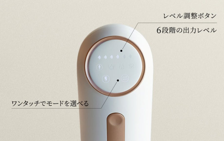 皮膚の強さに合わせて、ぴったりなレベルを選択することができます。「出力レベル6」モードでお手入れの効果が出やすいです。「毛が太く、気になる部分はハイパワーでケアしたい」方にはお勧めます。「出力レベル1」モードで初めてご使用なさる方や痛みを感じやすい方も、快適にお使いいただけます。