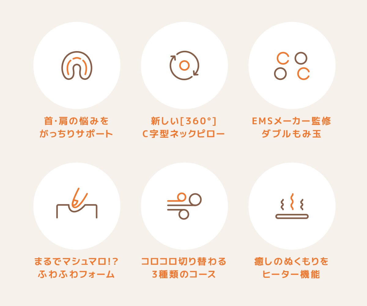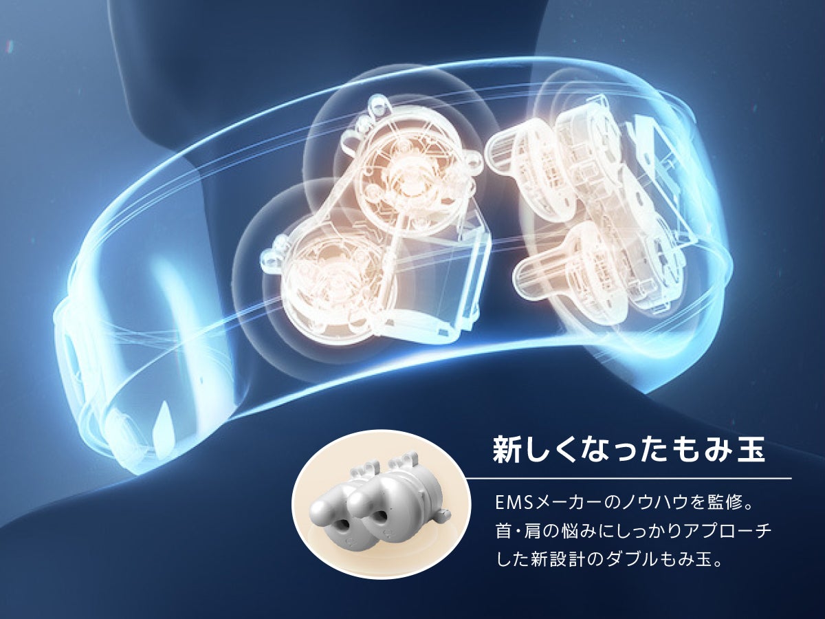 首・肩にフィットするフォルム。新設計のもみ玉で深もみリラックスのプログラムです。