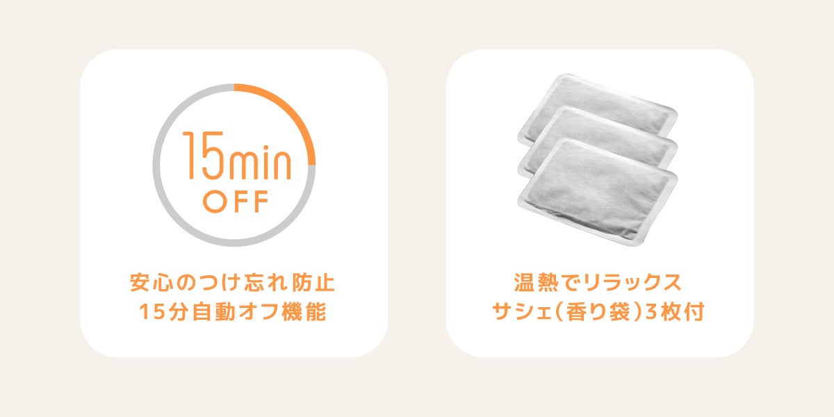 「PGG Neck pillow Refresher」は、15分で電源が切れる自動オフ機能があります。