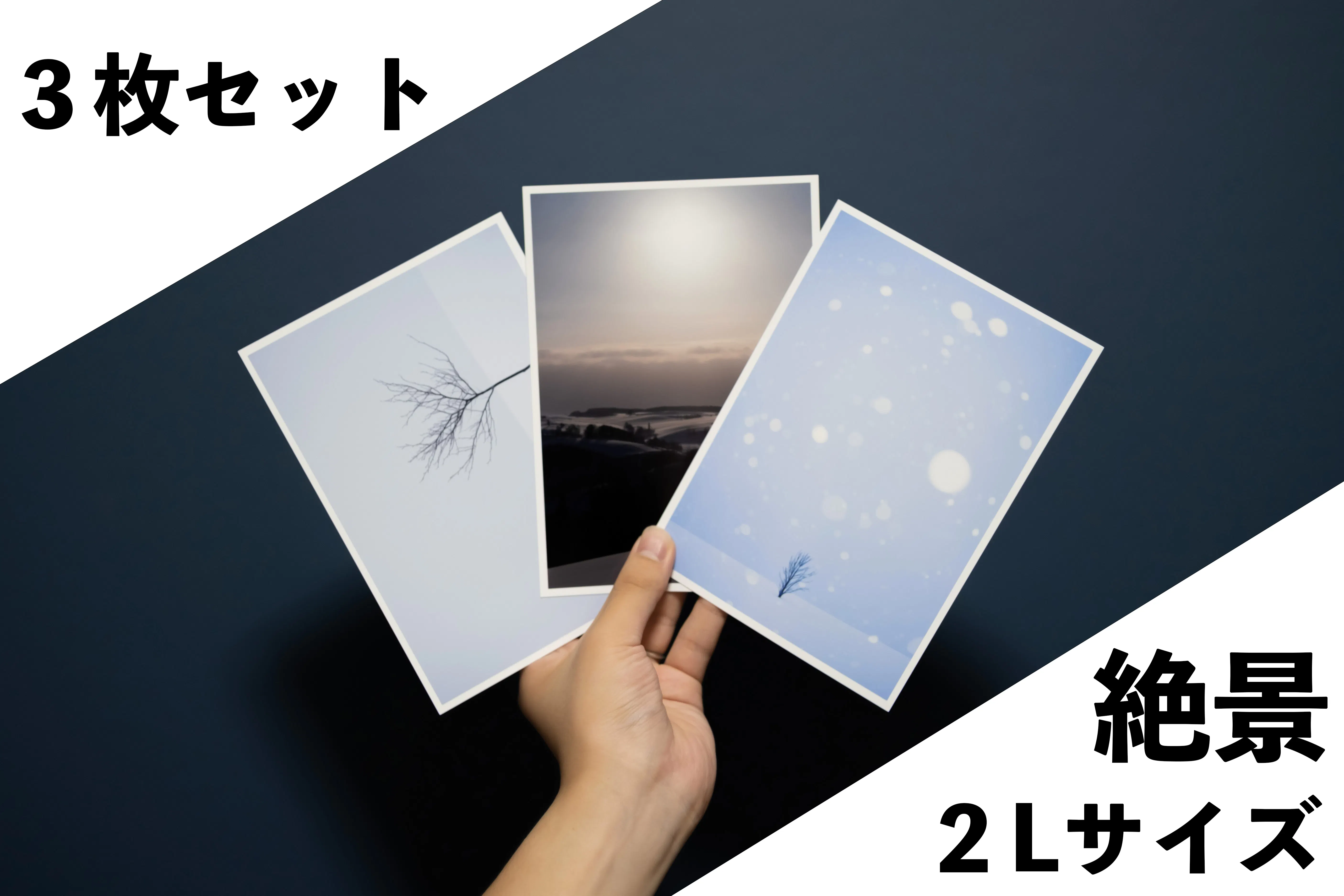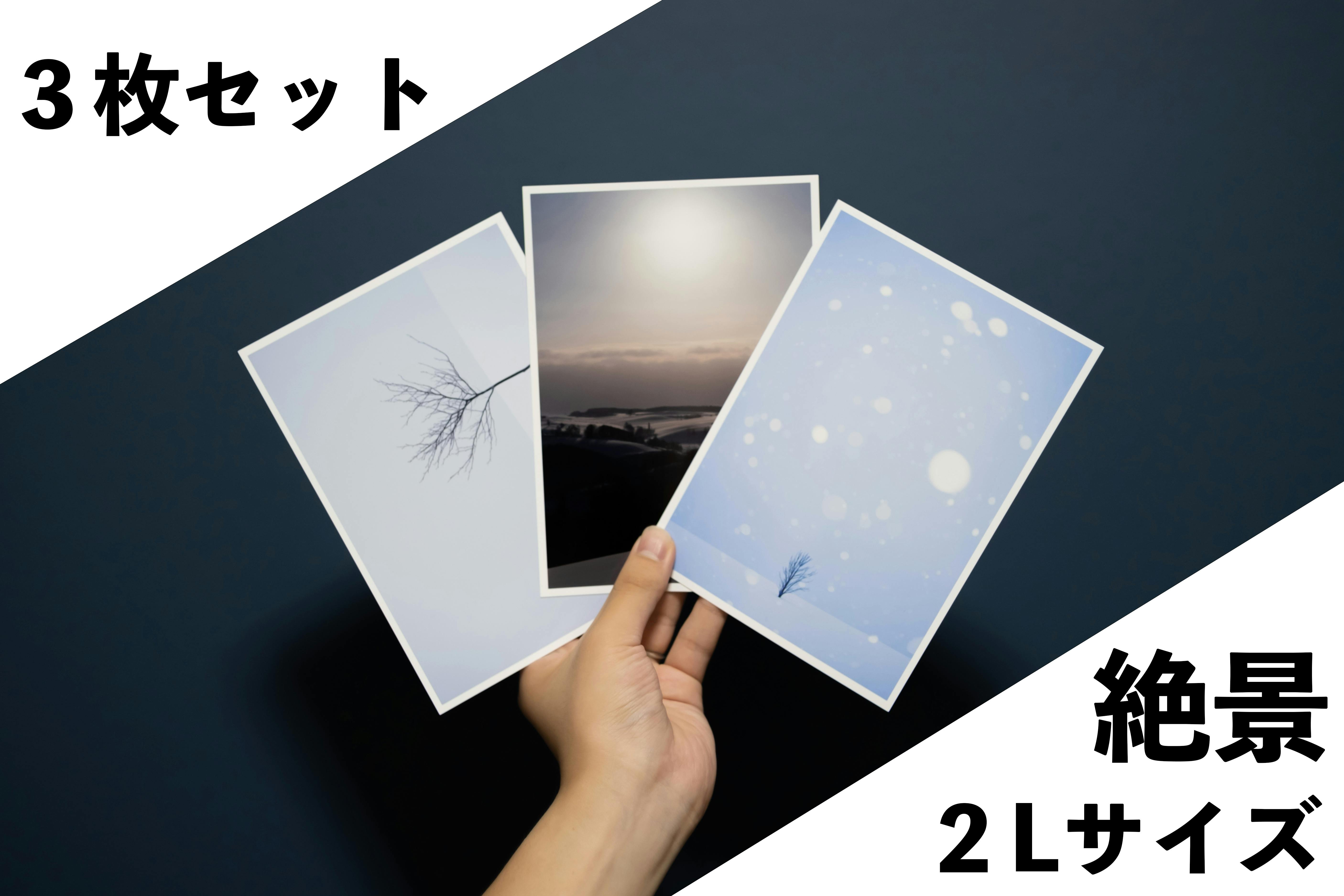 アイスランドで撮影した絶景写真の中から3枚を選択していただき、ちょっぴり大きい2Lサイズにプリントした写真を3枚セットでお送りいたします!