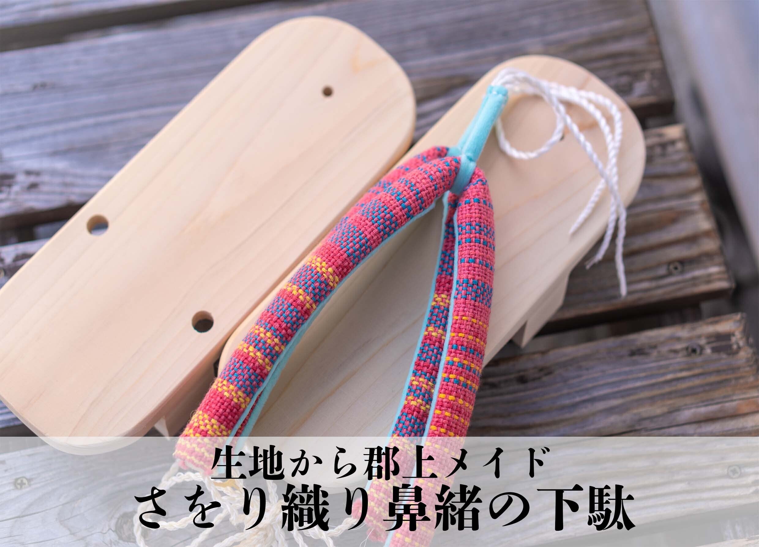 郡上産の鼻緒第一弾!さをり織りの鼻緒を下駄にすげてお送りいたします。