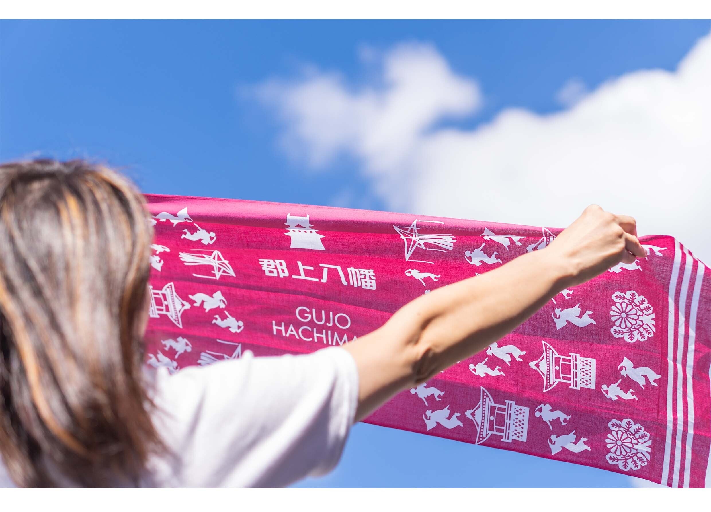 青空と手ぬぐいシルクスクリーンの踊り手ぬぐいをお送りします。