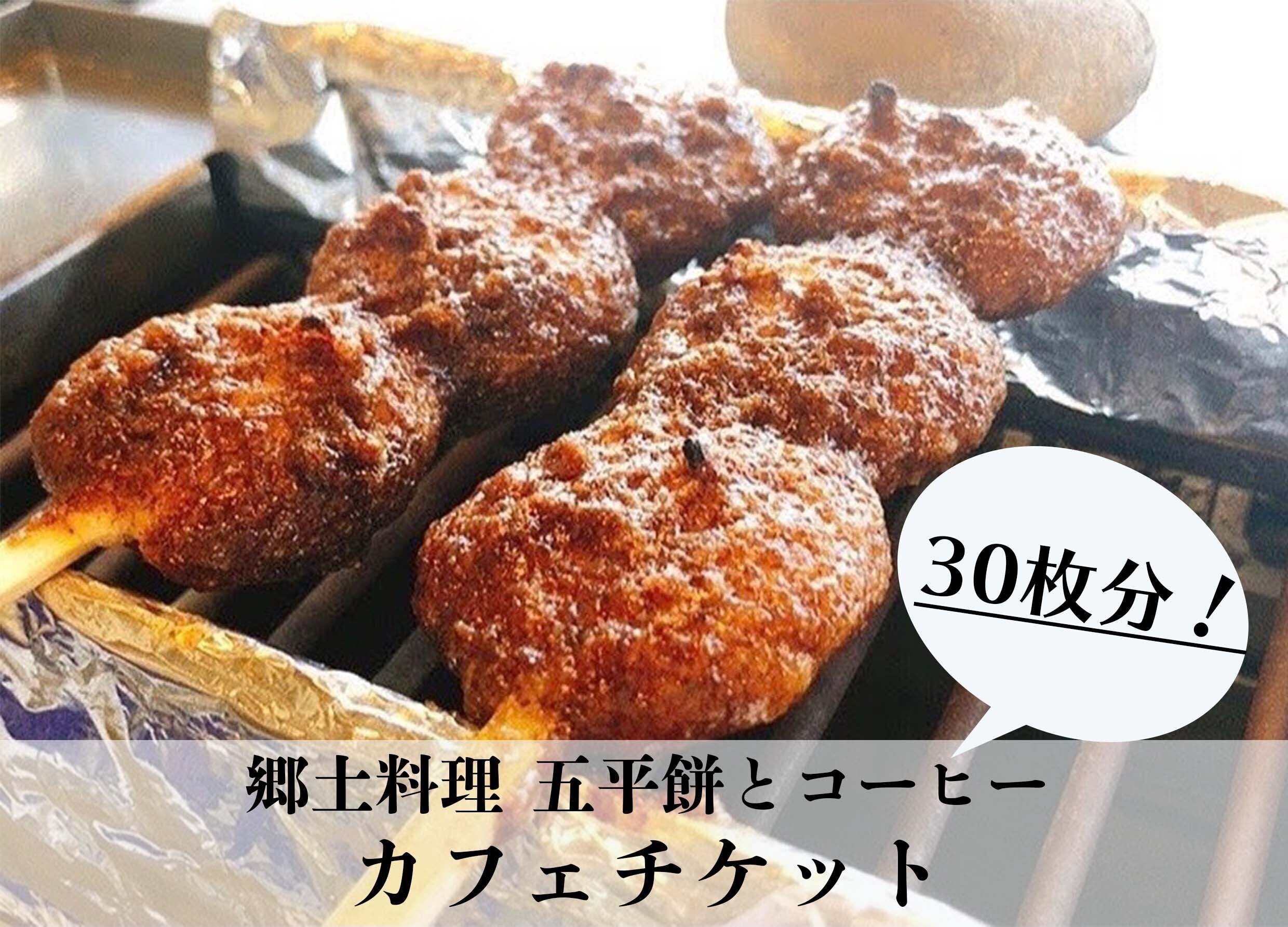 チケット30枚をお送りします。1枚で五平餅orコーヒー、2枚でお好きなラテメニューが注文できますよ♪
