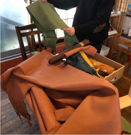 郡上産の鹿革を買い付けする様子(素材集め)