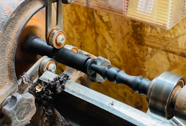 …ステムは細い形状のため負荷がかかりやすく強度が求められるため非常に頑丈な資材を使用します。使用できる資材は限られますがその中から杢目や木肌の美しい物を選び使用しています。また頑丈な木は外部環境による変質が少なく安定しているため長く使えると言うような複合メリットがあると言えます。