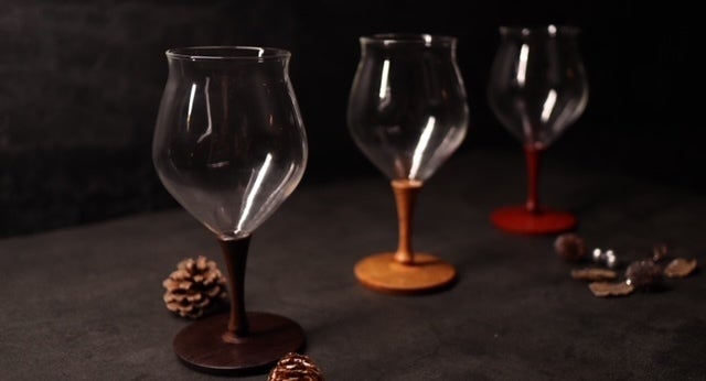 高級木材を一つ一つ丁寧に削り出し作られる木製ステムのグラスは凛とした美しさと温もりを同時に楽しめます‼