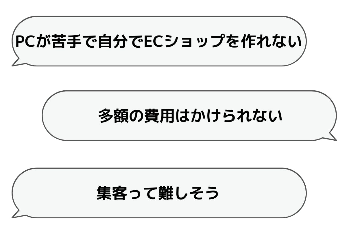 ECショップを立ち上げようと思っても、PC操作が苦手な方はまずそこでつまずきます。また仮にECショップが作れたとしても、今度は集客に苦戦したり、顧客管理を外注しようにも費用が高かったり…と色んな壁が立ちはだかります。