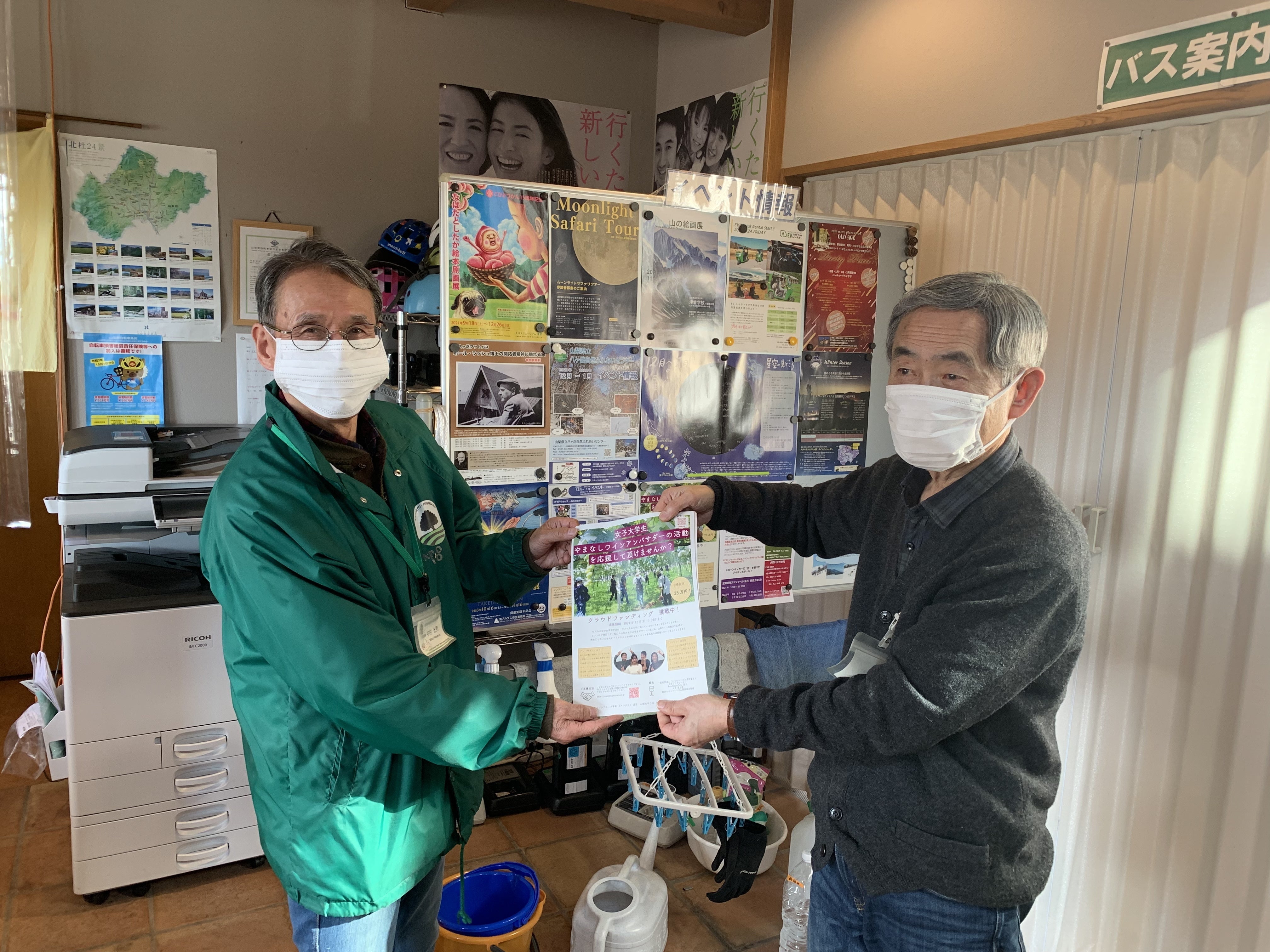 メンバーの1人が北杜市に住んでいることもあり、より1人でも多くの方に私たちの活動を知ってもらいたいという思いから、観光案内所にお邪魔しました。