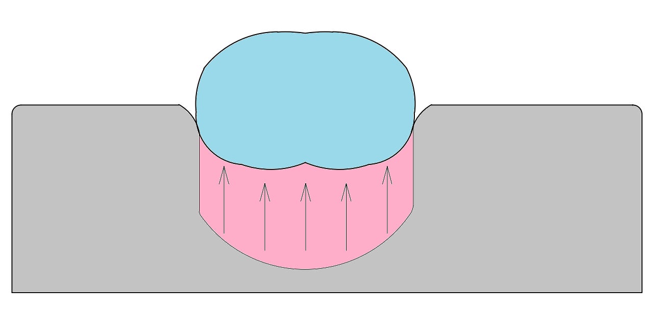 しかしベッドに杭を打ち込んだら病院から訴えられます。 摩擦杭の現象をベッドで再現するには、その原理「応力分散」の応用。ベッドに寝ると重さに応えてマットが押し返します。その力が「応力」。お尻の沈み量はマットの応力に比例するので、重い人を押し返すためには深く、軽い人なら浅く沈みます。そして応力は、身体の真下で生じます。