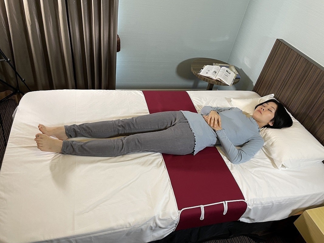 【位置決め】腰に巻き、いつものように寝て、広げるだけ