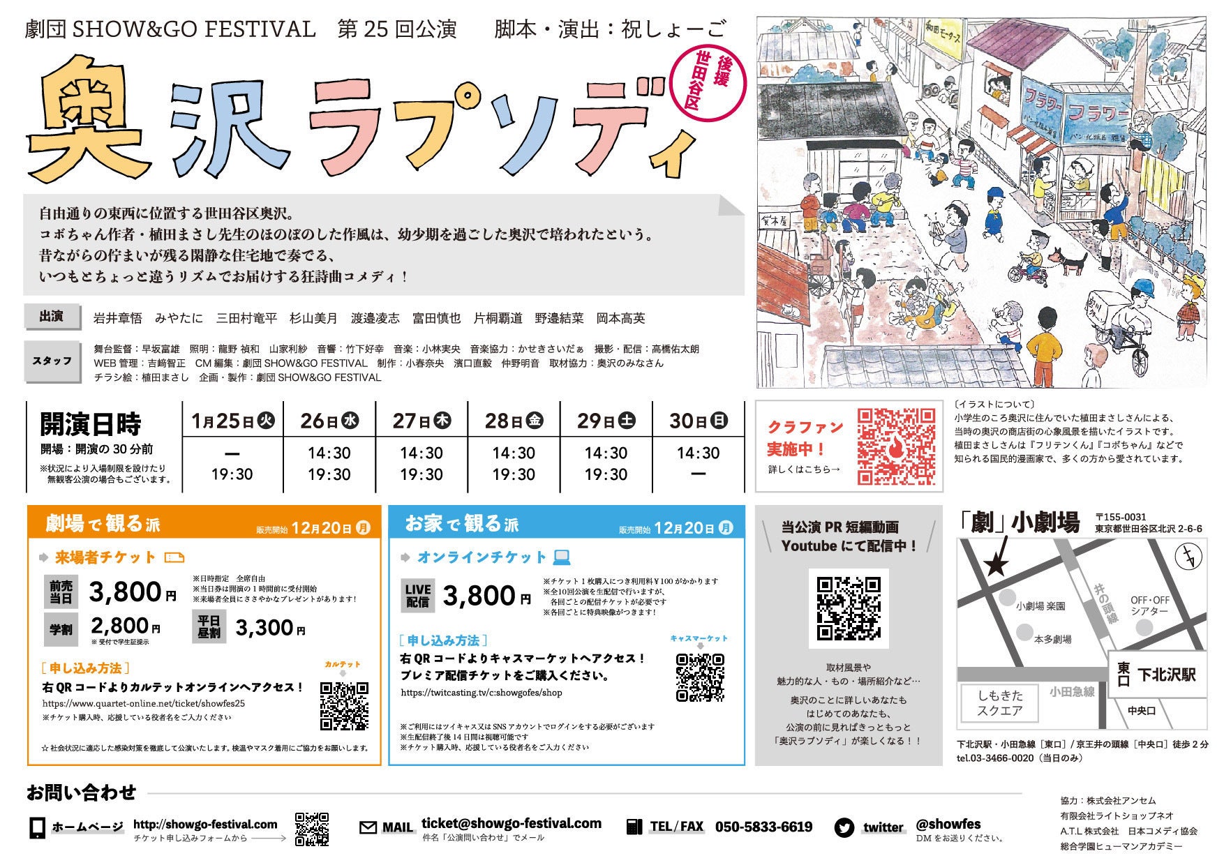 劇団SHOW&GO FESTIVAL主宰。脚本、演出、出演を担当。