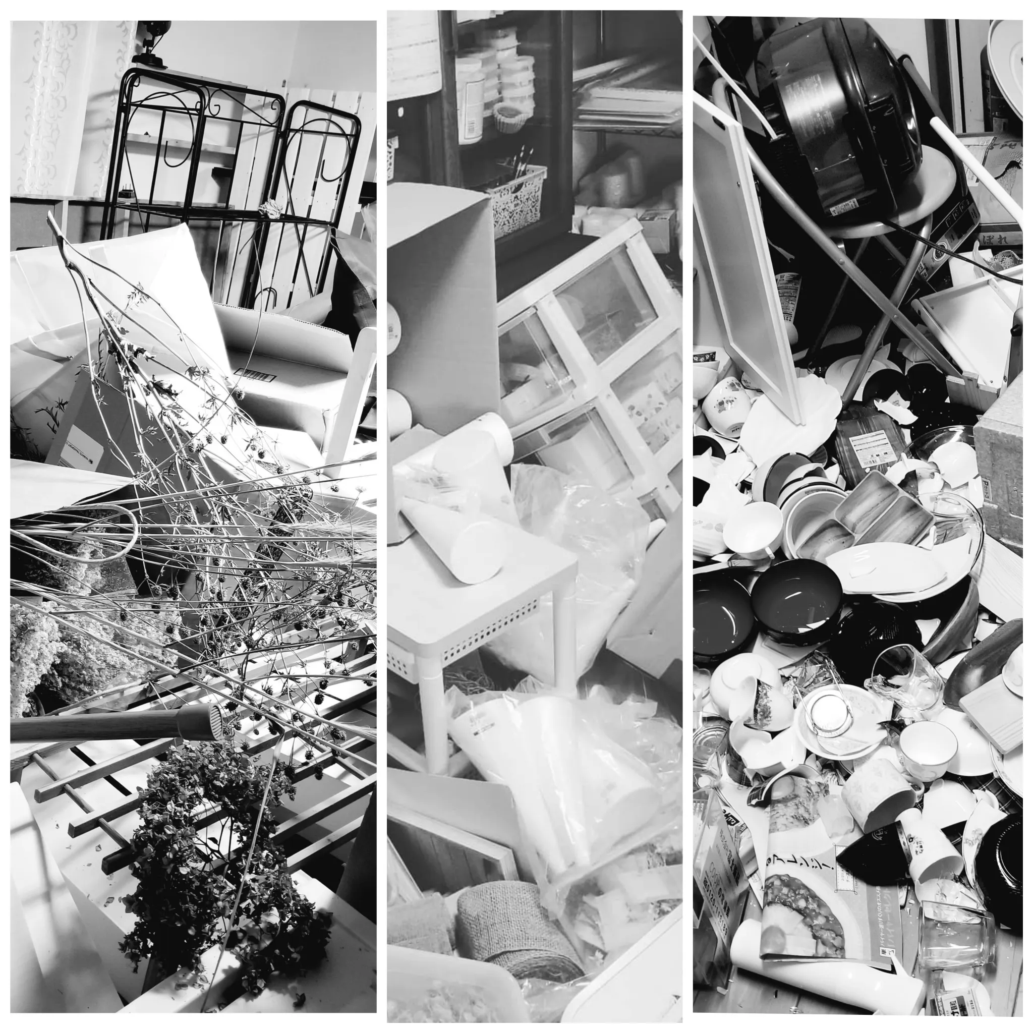 家財はもちろん、高額な機材や材料在庫のほとんどが落ちて、埋もれて、潰れて、使い物にならなくなってしまい、ネットショップも一時休業となりました。(現在材料の確認ができたものだけ再開しています。)