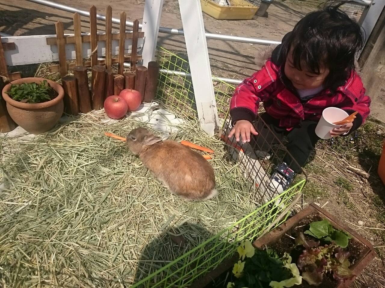 牧場で餌やり(岩瀬牧場)