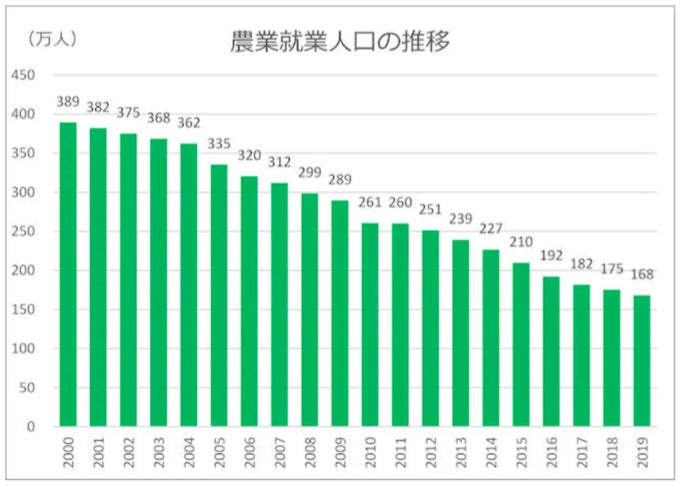 日本の農業従事者は20年間で230万人も減少し、2021年には約160万人しかいません。