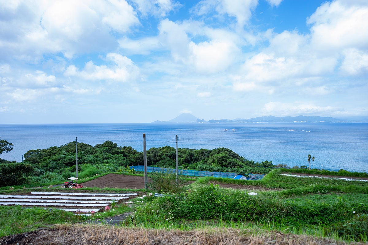 - モリンガ畑からは薩摩富士と呼ばれる開門岳が顔を覗かせます。