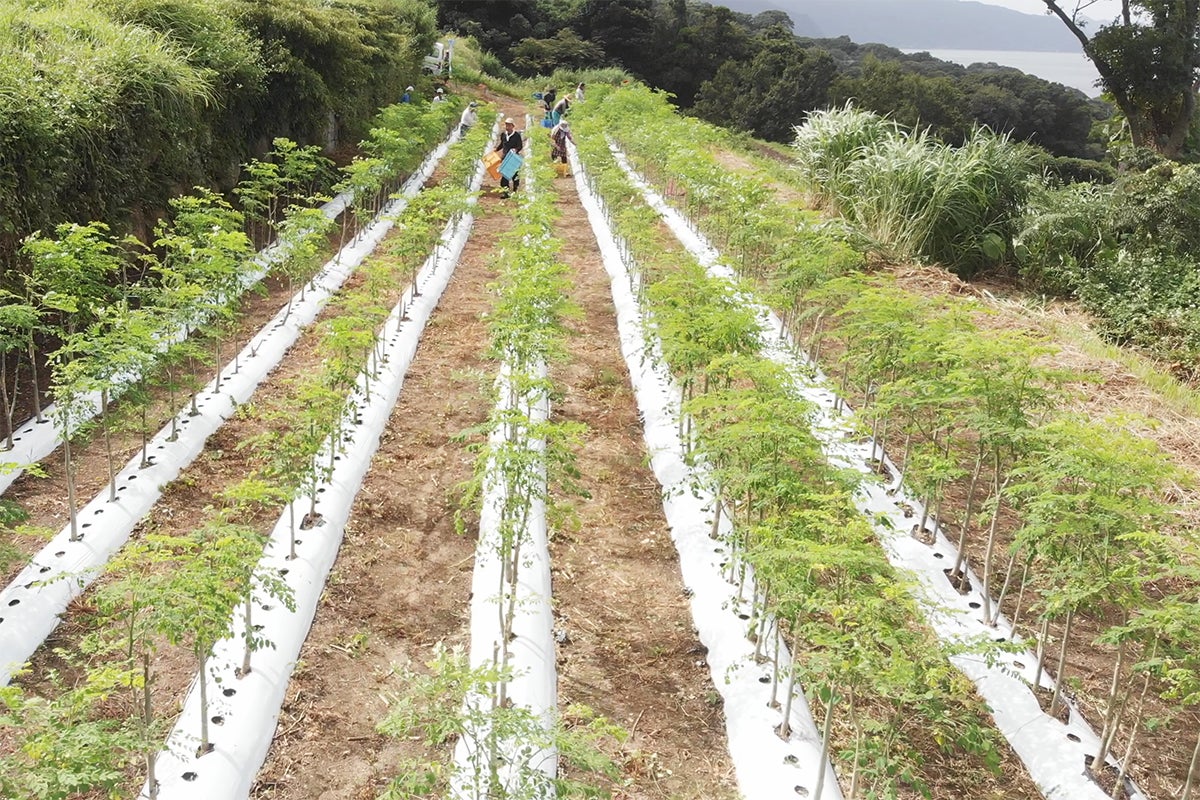 そんな水資源に恵まれた土壌、そして適度な昼夜の気温差。豊かな自然の恵みがある佐多岬は、他の地域では植え替えが必要な畑もある中、冬でも温かい為、自社のモリンガは越冬し毎年の植替えが必要ありません。