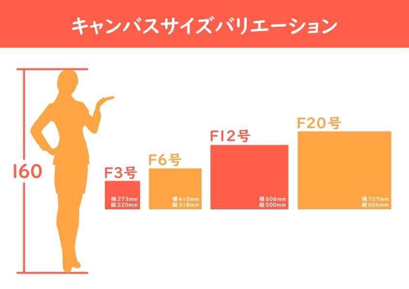 キャンバスサイズはF3号・F6号・F12号・F20号の4つからお選びできます。