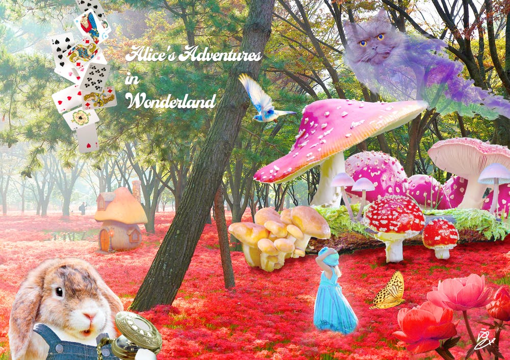 不思議の国のアリスの世界観をフォトバッシュアートで表現しました。