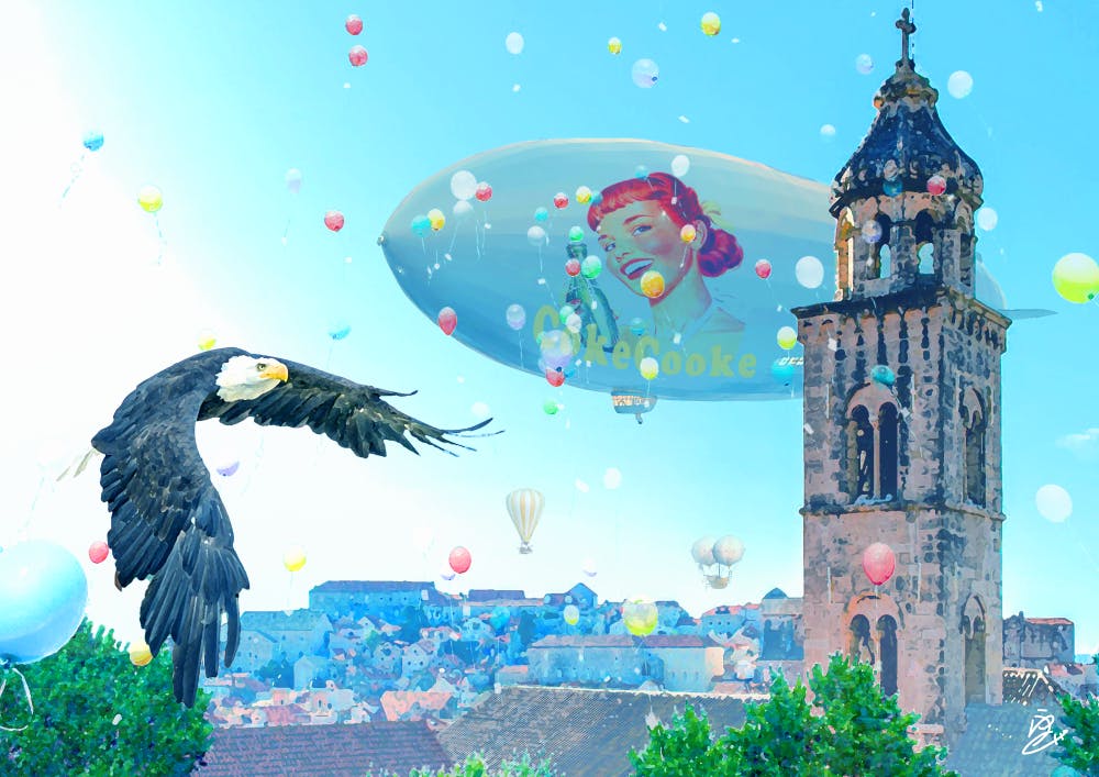イラストレーターとレタッチャーの技術を組み合わせて「フォトバッシュ」という技法を使ったアート作品を作っています。
