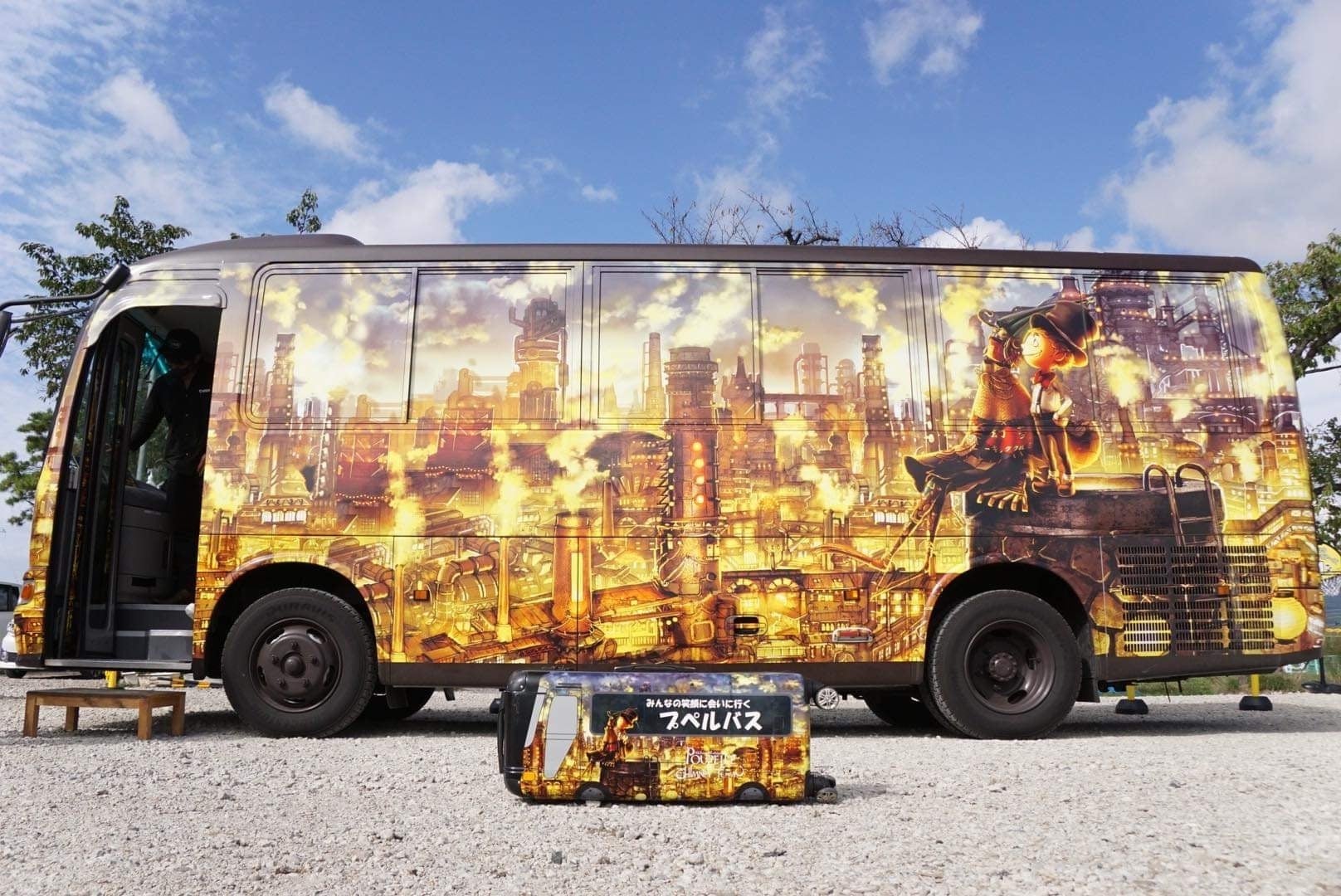 移動式個展会場『プペルバス』は昨年映画にもなった大人気絵本『えんとつ町のプペル』の光る絵本展がバスの中で見れるようになっています。