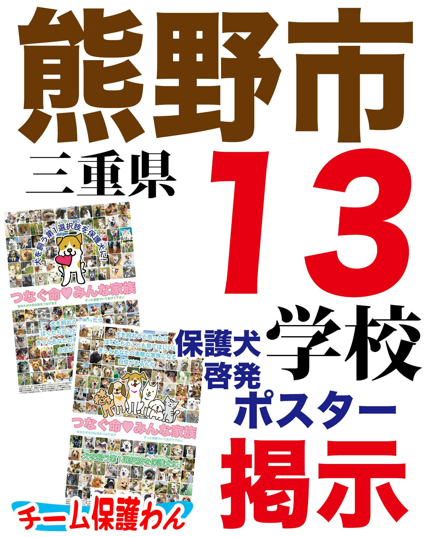 三重県熊野市の全小中学校、計14校に保護犬啓発ポスターを掲示して頂ける事になりました!!