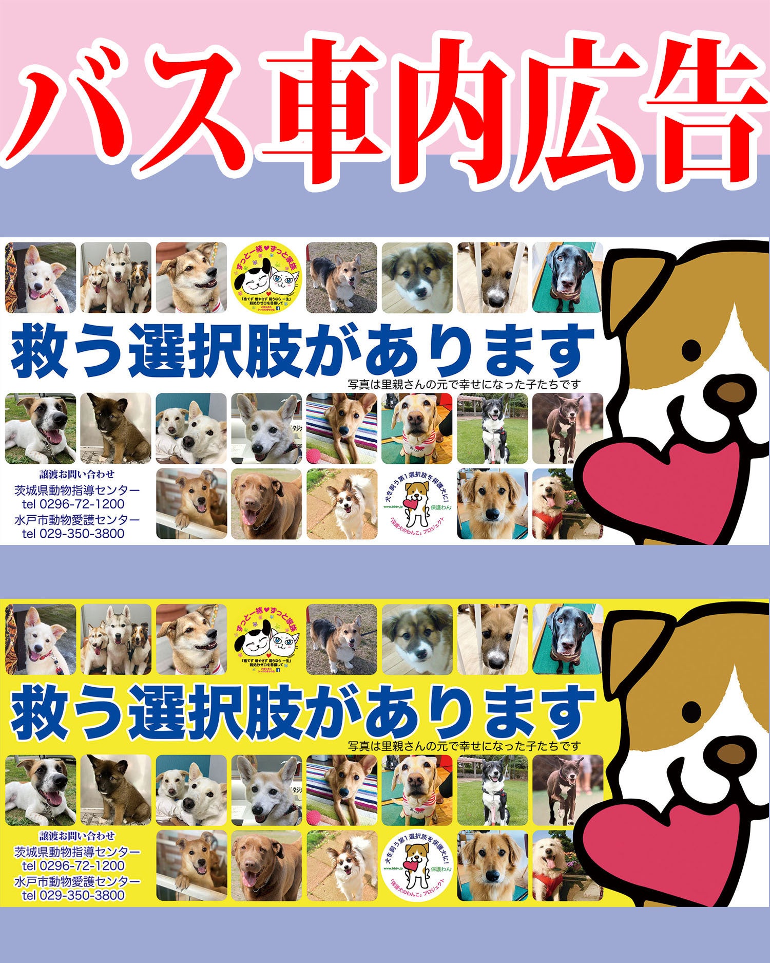「いばらきのシッポの幸せの会」さんと、保護わんのコラボで行っている茨城交通バスの啓発広告プロジェクトが、今年から更にパワーアップします!