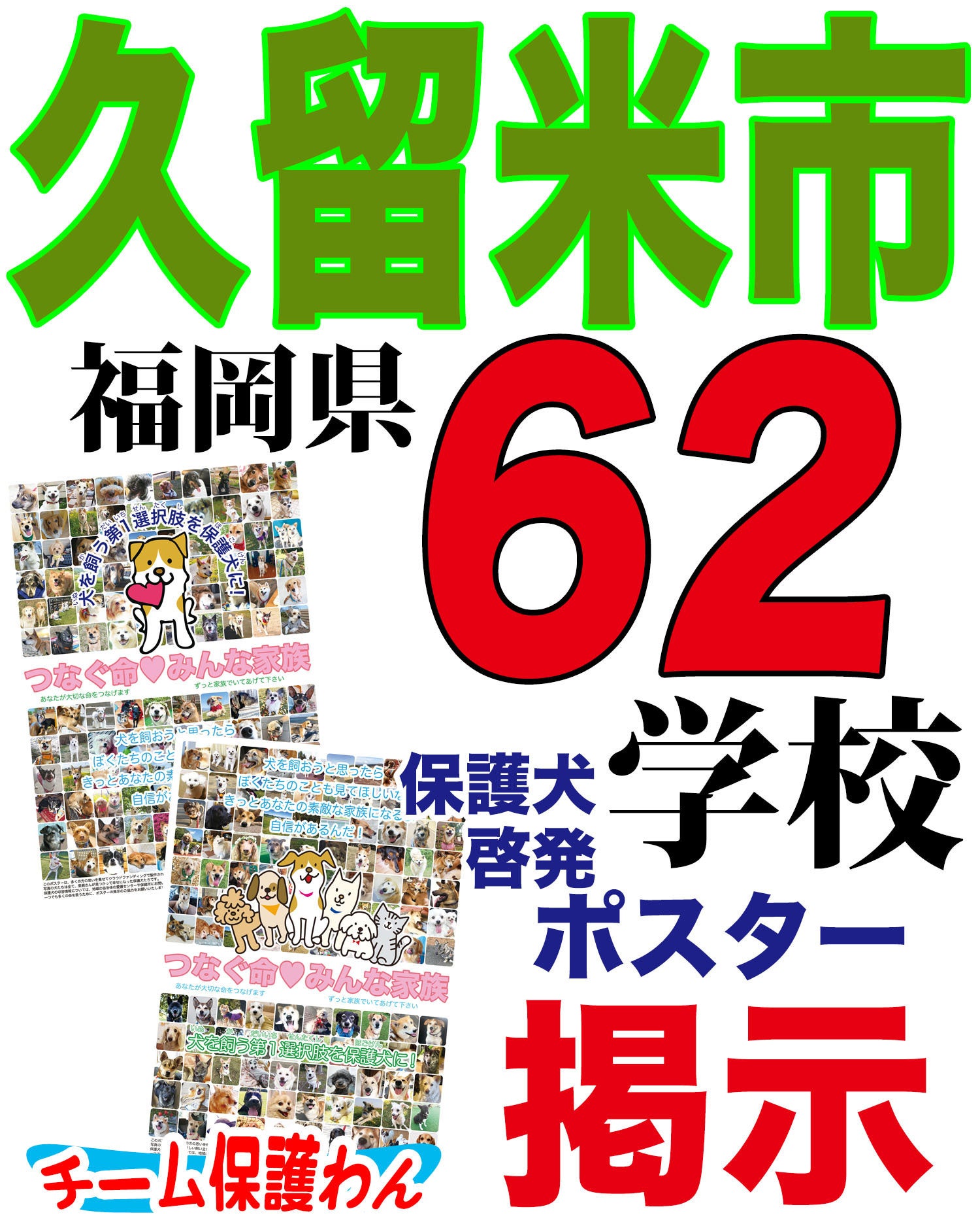 福岡県久留米市の全小中学校と特別支援学校、計62校に保護犬啓発ポスターを掲示して頂ける事になりました!!