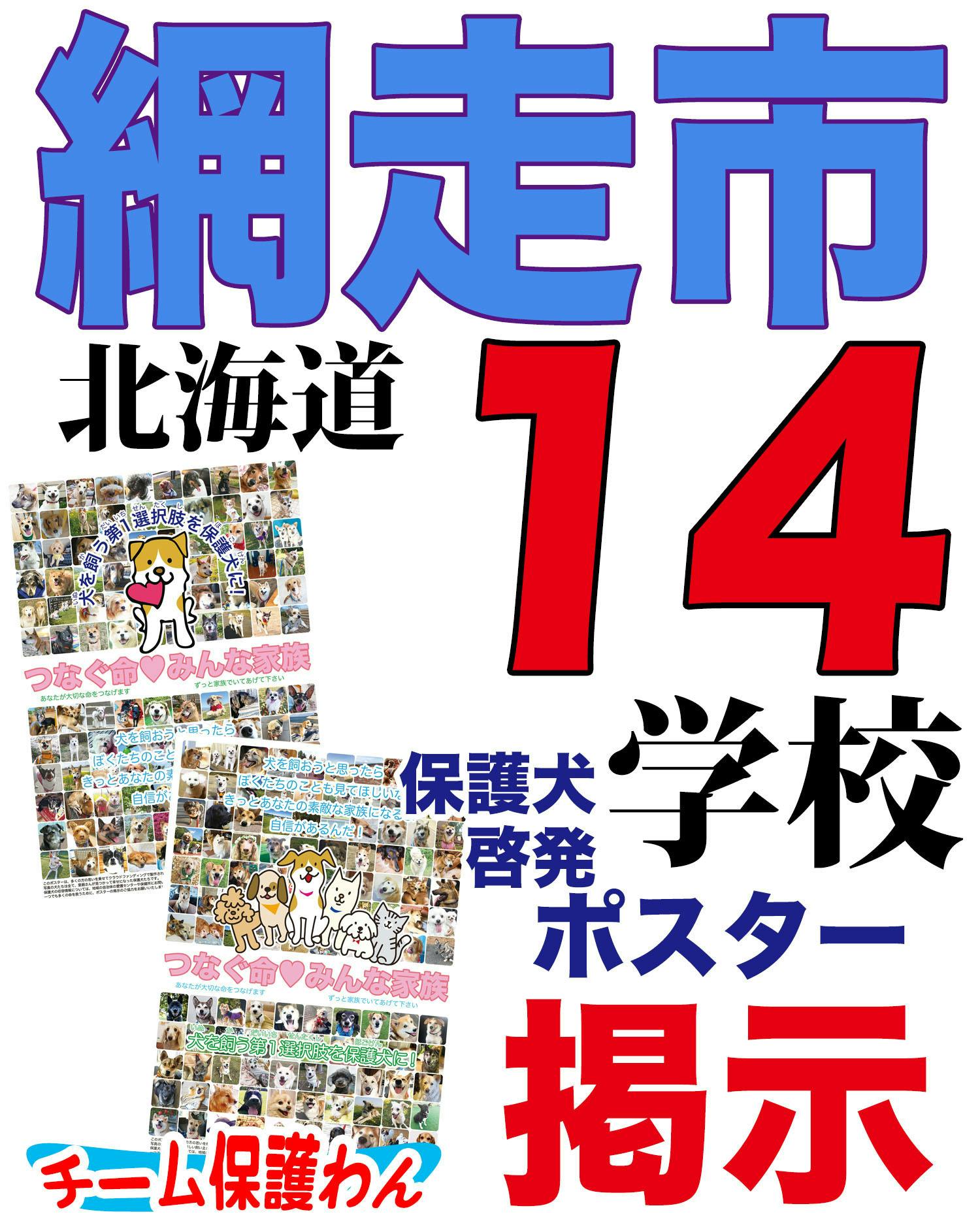 北海道網走市の全小中学校、計14校に保護犬啓発ポスターを掲示して頂ける事になりました!!