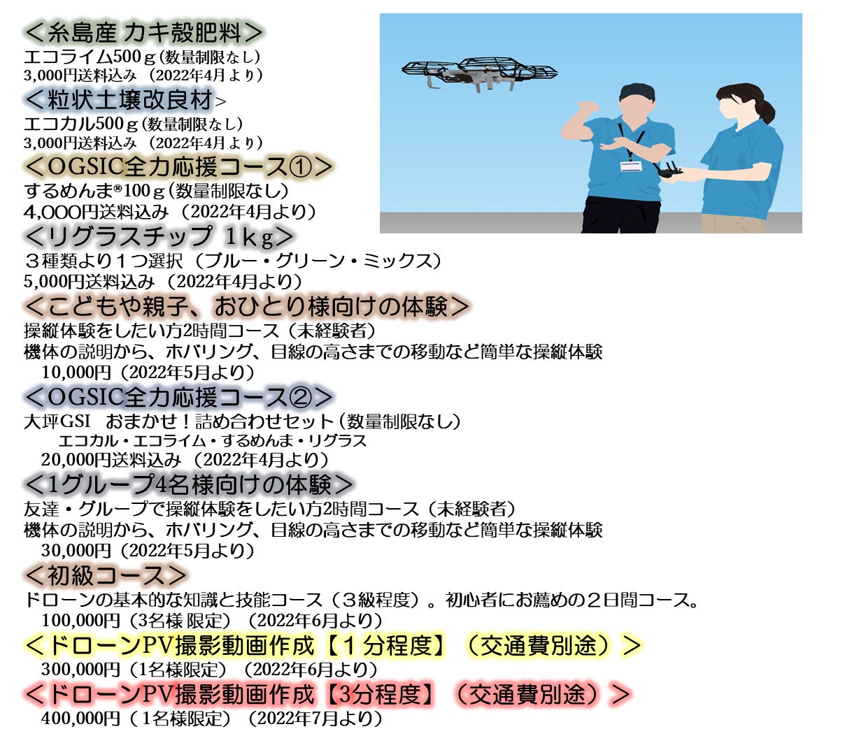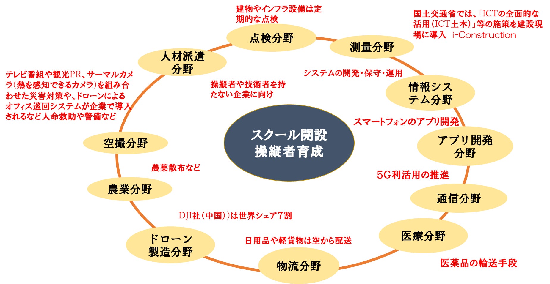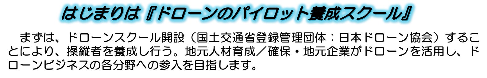 ドローン活用を持続的に行っていくための人材育成を目的に行うスクールを開校します。