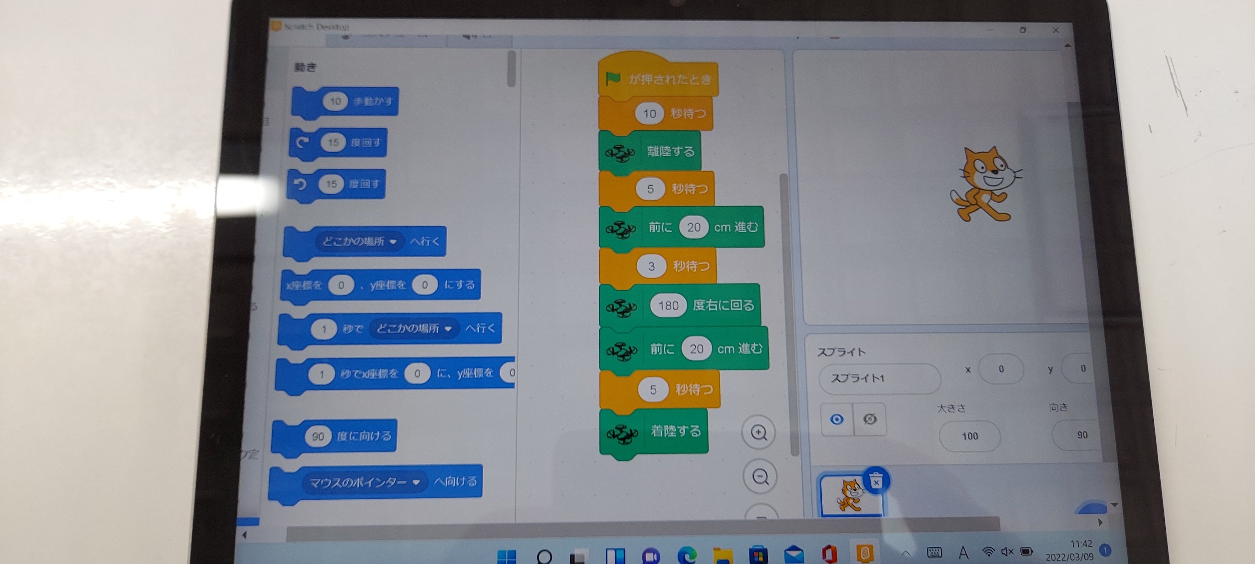 2022/03/15 16:52パソコンでScratchを立ち上げ、簡単なプログラムを入力しました!実際、実行してみましょう! もっと見る