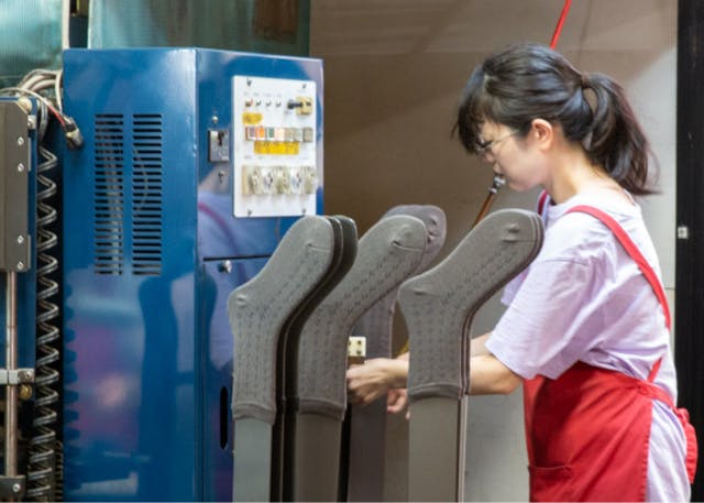 自社商品、蒸れにくく暖かい「二重あぜ編み靴下」を開発。