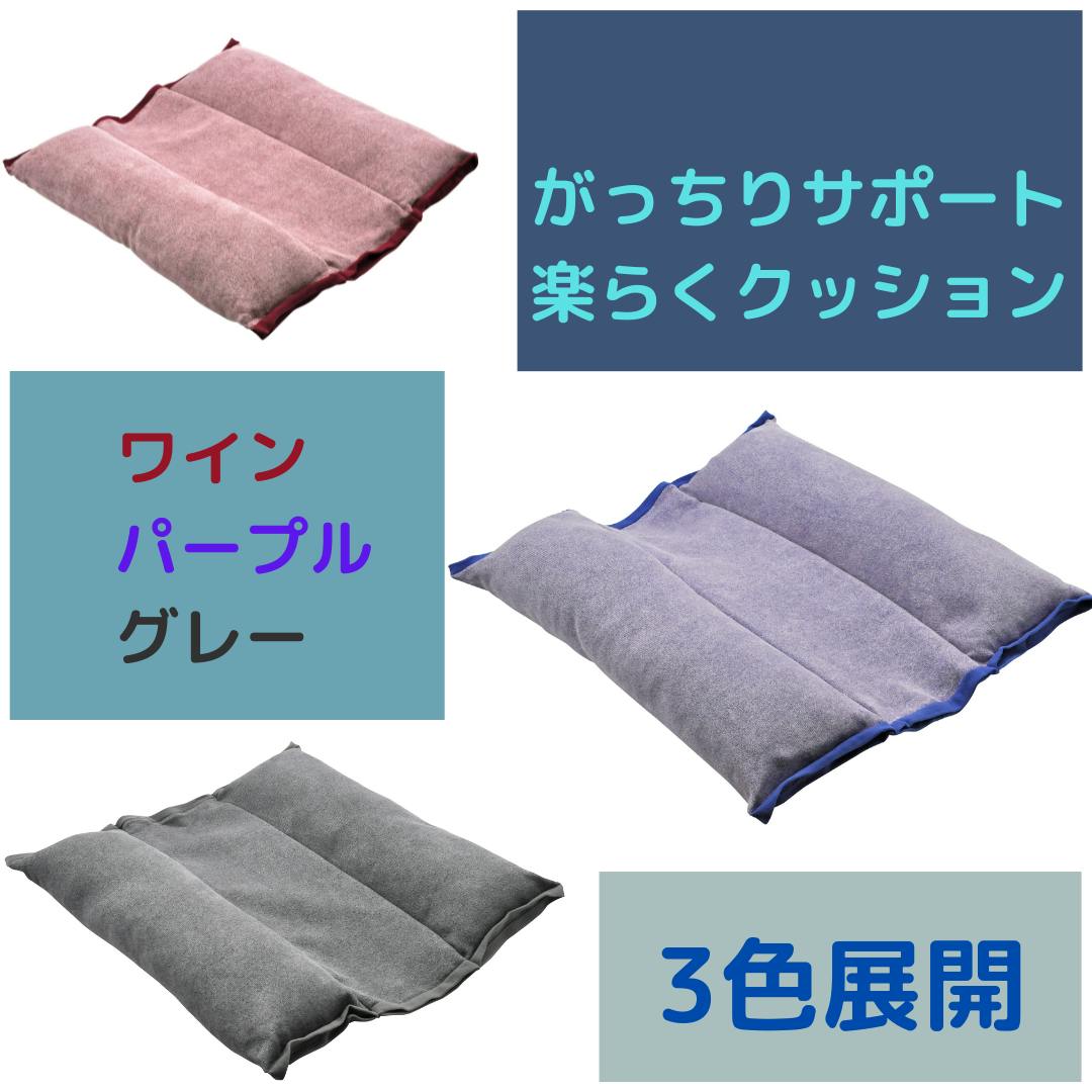 最初に開発したクッションは車椅子用の「ズレない・ムレない 楽らくクッション」で特徴は姿勢を安定させるクッションで肩甲骨のマッサージにもなります。