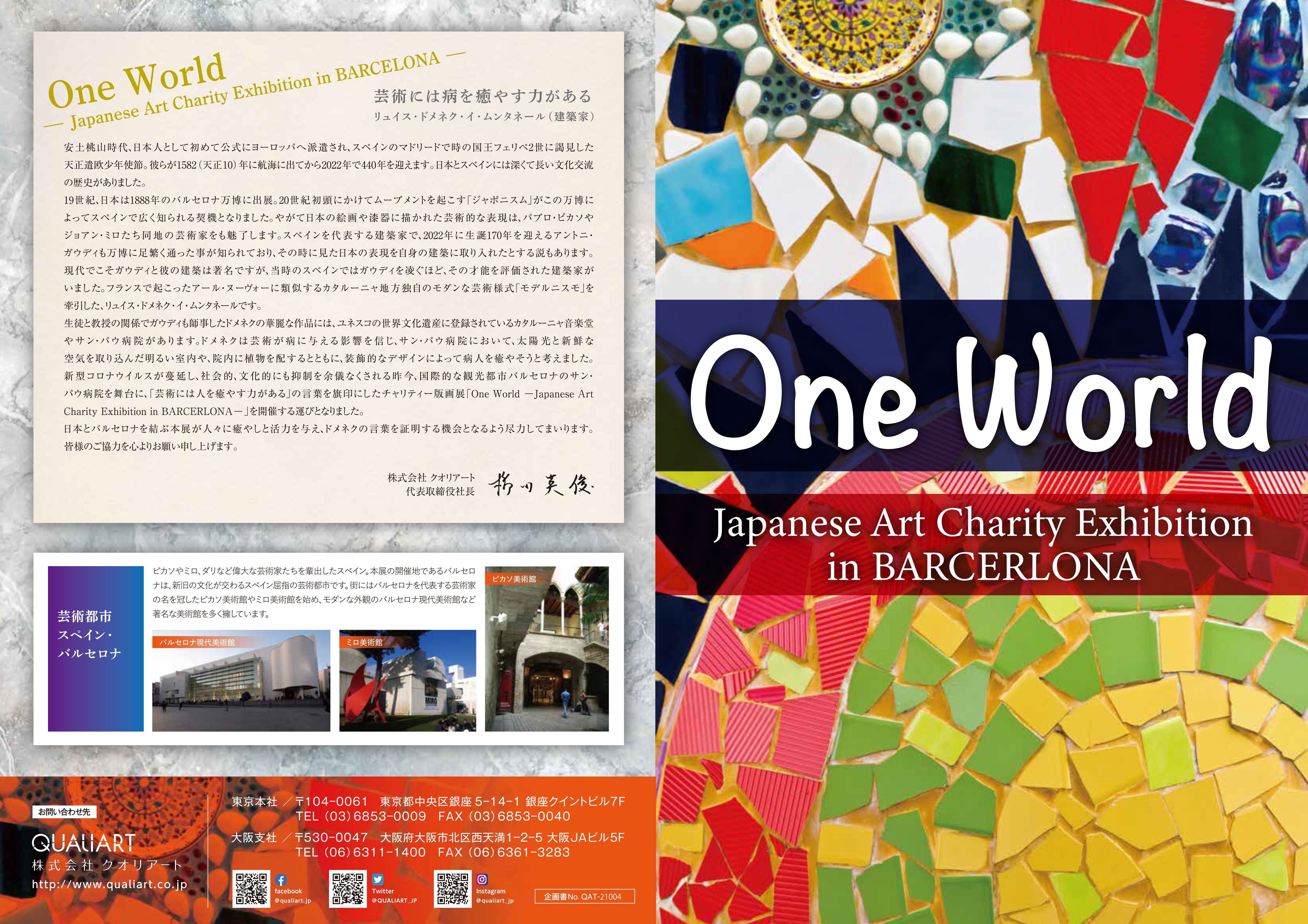 私はこの度、株式会社クオリアートさんが主催する「One World」Japanese Art Charity Exhibition In BARCERLONA というチャリティエキシビジョンに参加させて頂く事になりました。